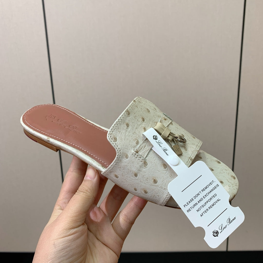 FLAT SLIPPERS IN CREAM WHITE LAMBSKIN OSTRICH SKIN