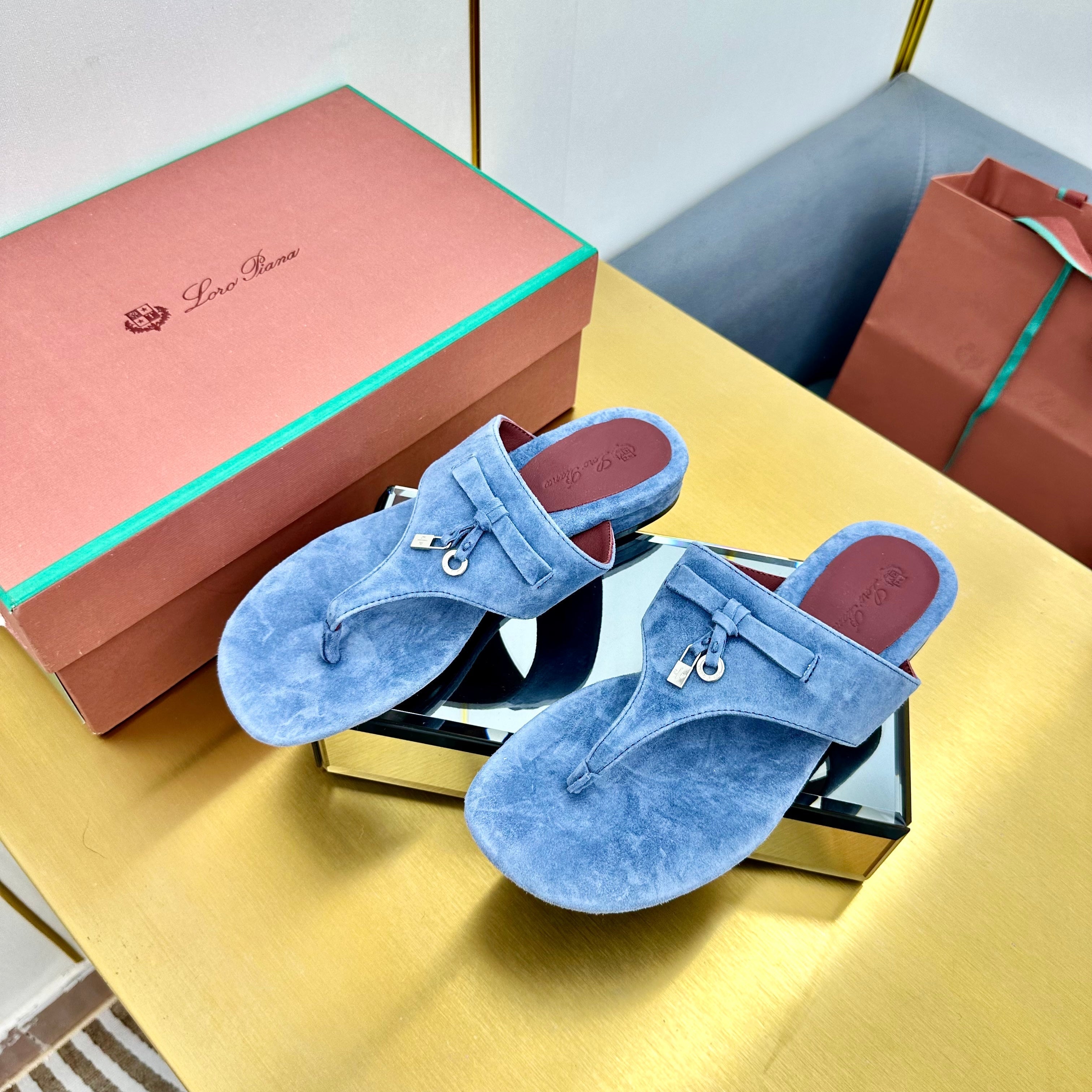 FLIP FLOPS IN BLUE SUEDE AND HARDWARE SILVER