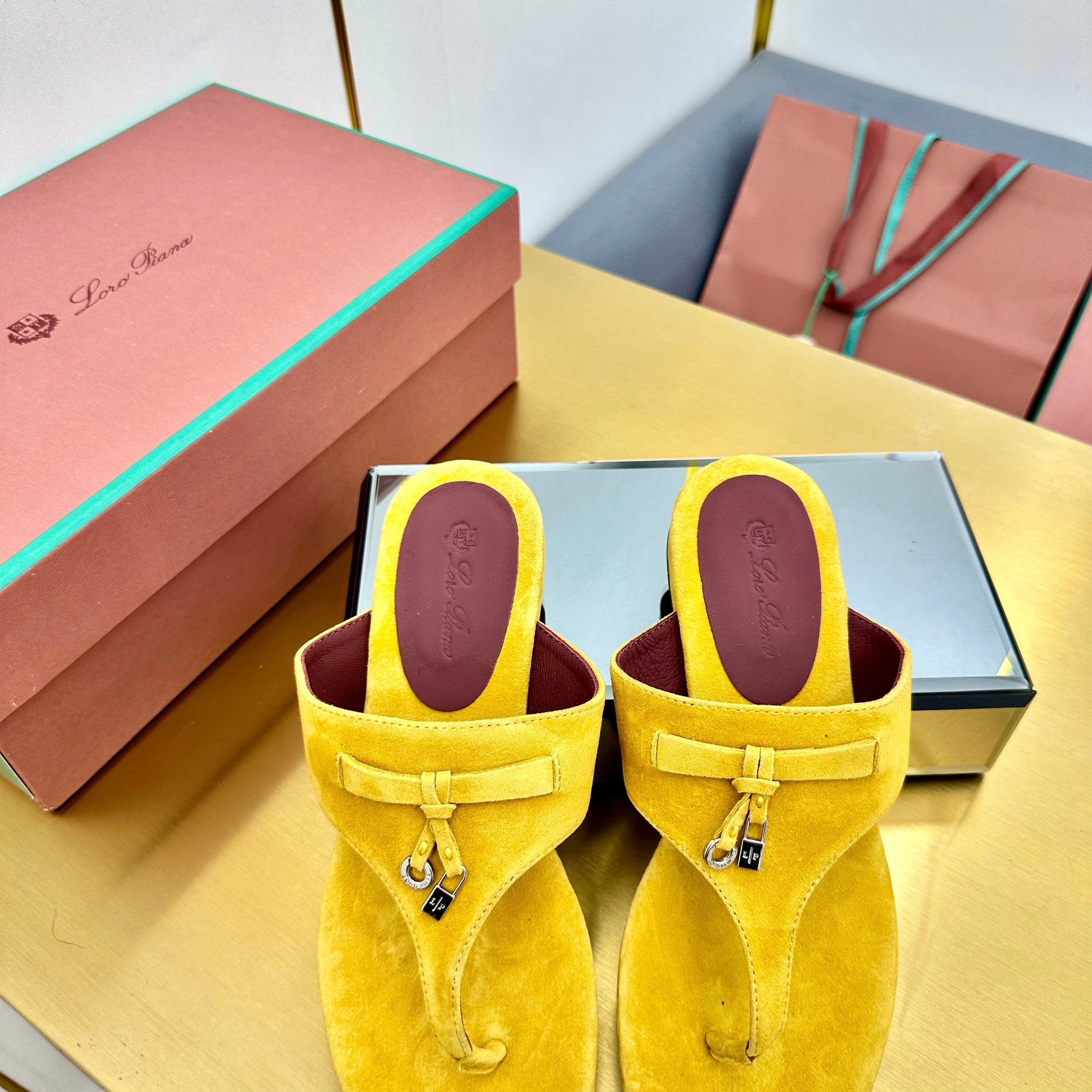 FLIP FLOPS IN YELLOW SUEDE AND HARDWARE SILVER