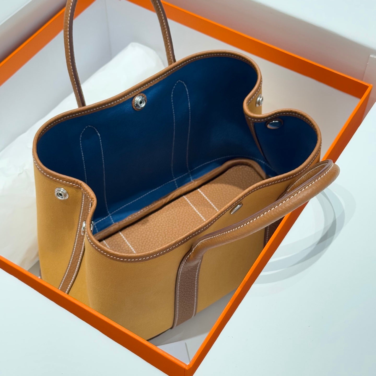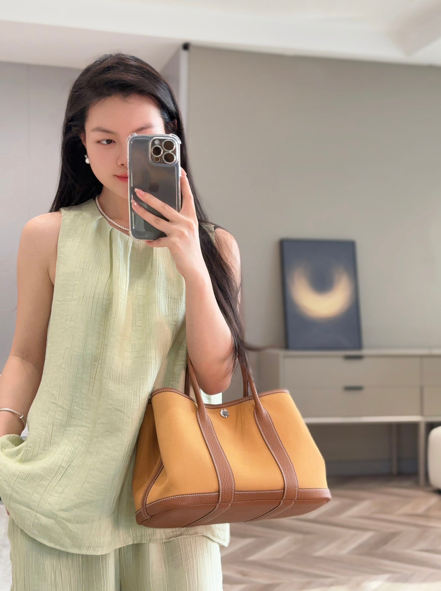 GARDEN PARTY 30CM IN DUNE MAGNOLIA TOILETS COTTON CANVAS AND BROWN CALFSKIN