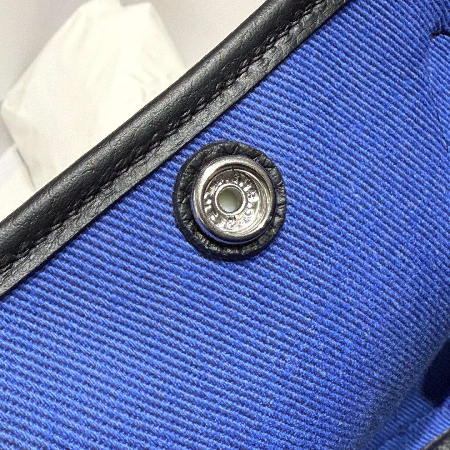 GARDEN PARTY 30CM IN WHITE TOILETS COTTON CANVAS AND BLACK CALFSKIN BLUE CANVAS ON SIDE OTHER