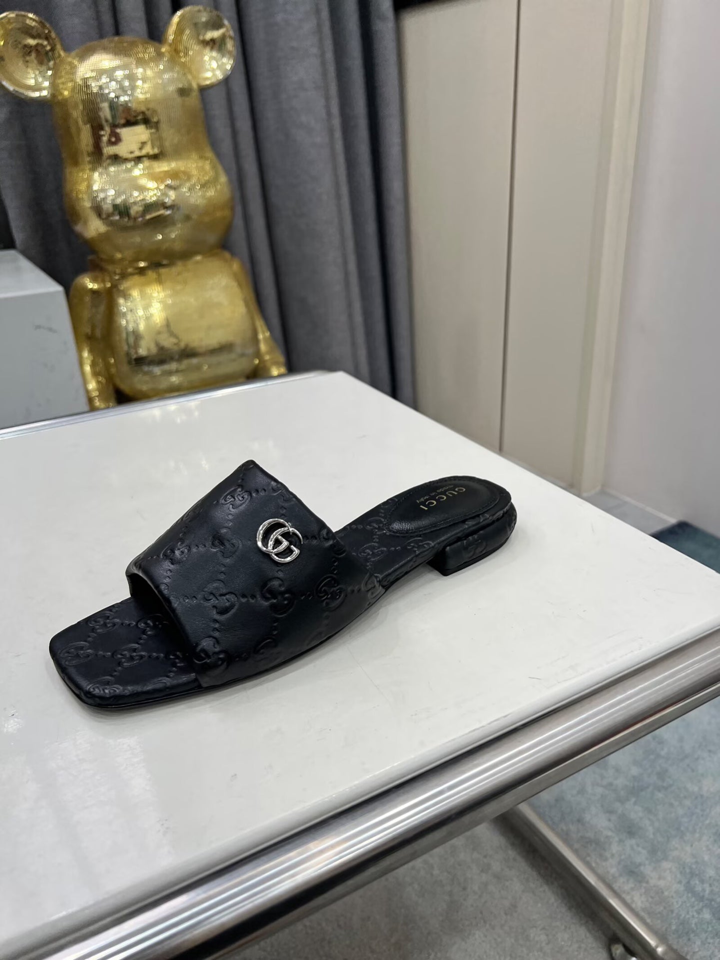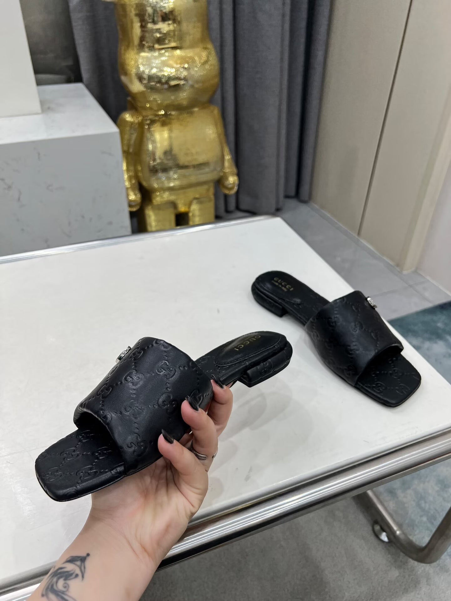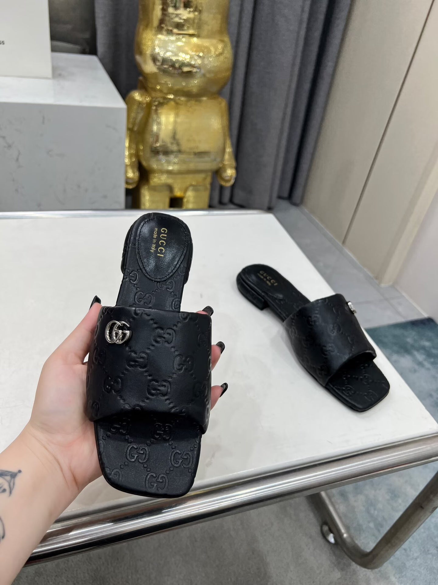 GG CASUAL SLIPPERS IN BLACK CALFSKIN LOGO EMBOSSING