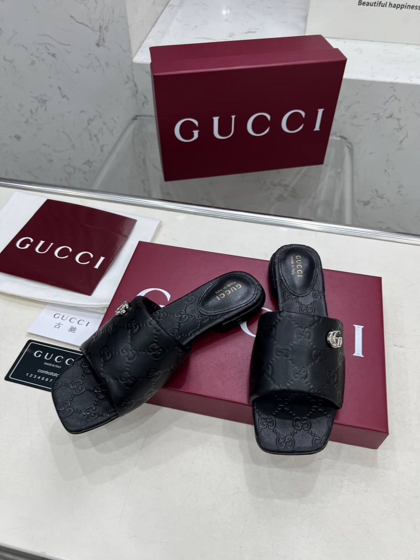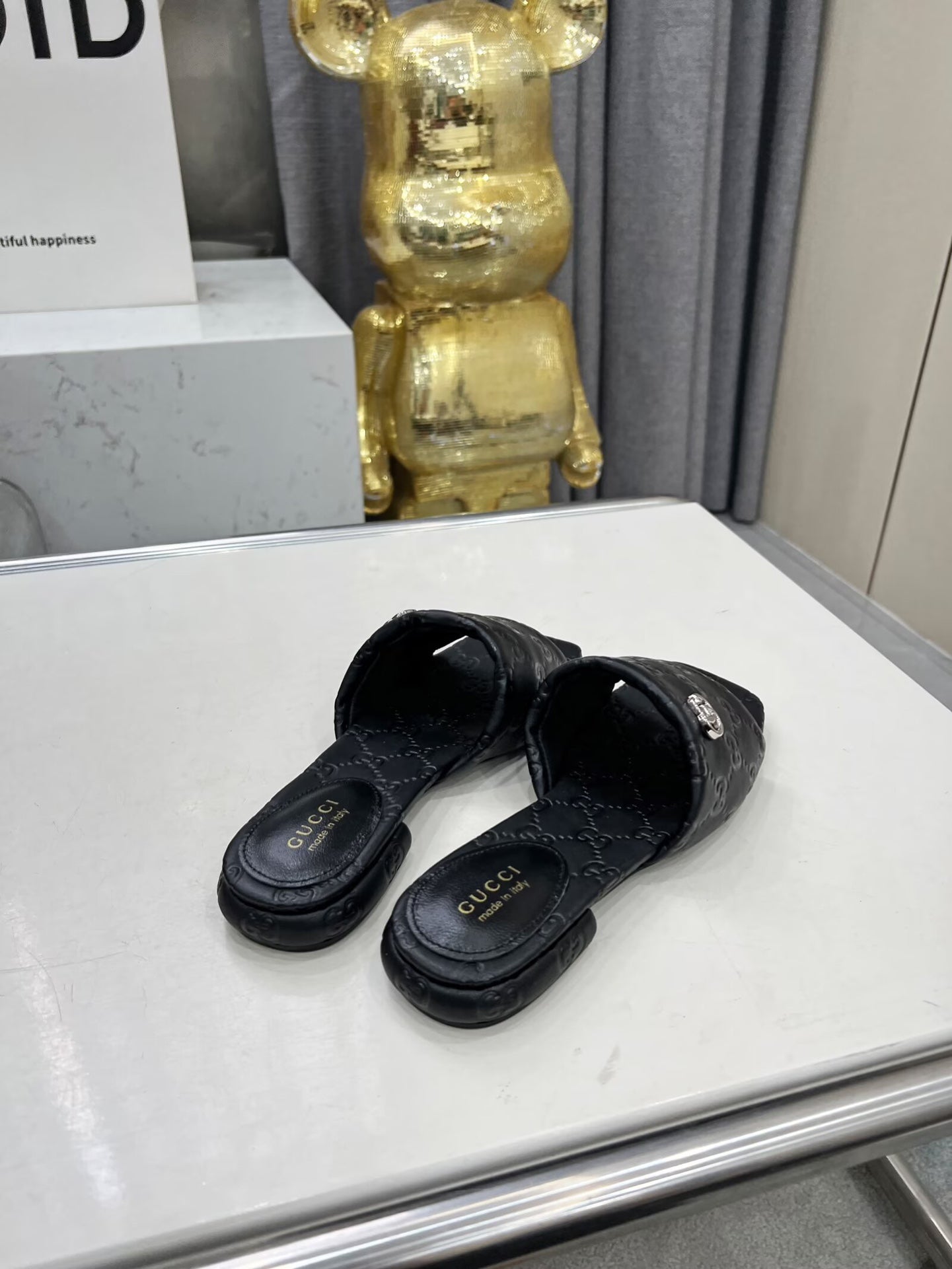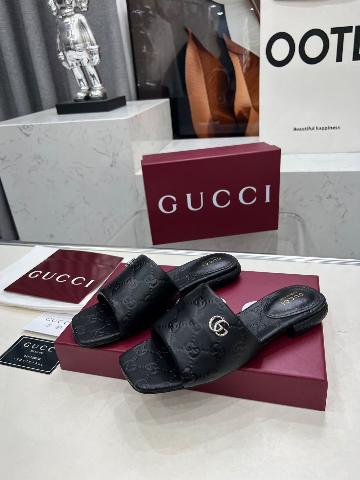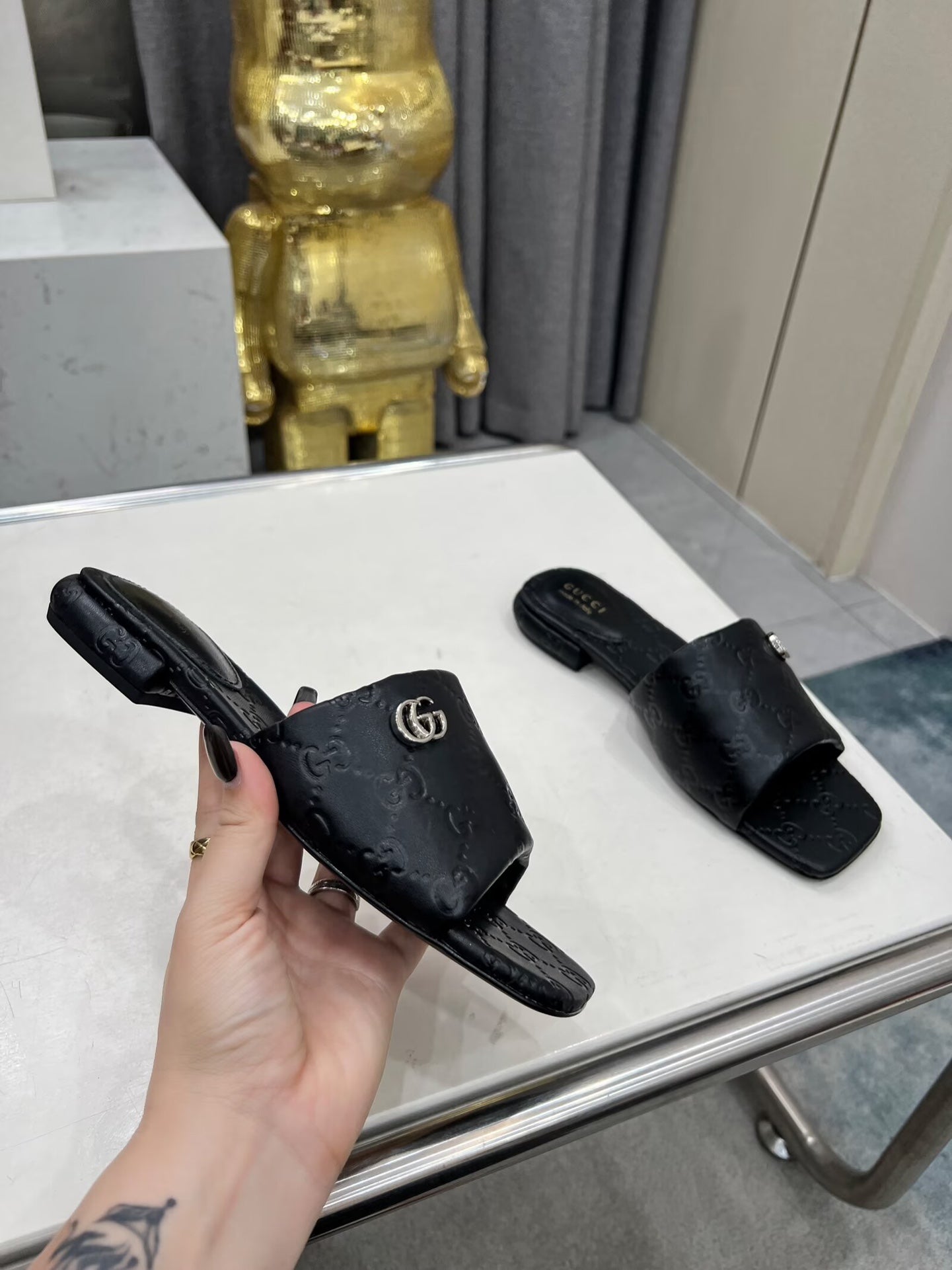 GG CASUAL SLIPPERS IN BLACK CALFSKIN LOGO EMBOSSING