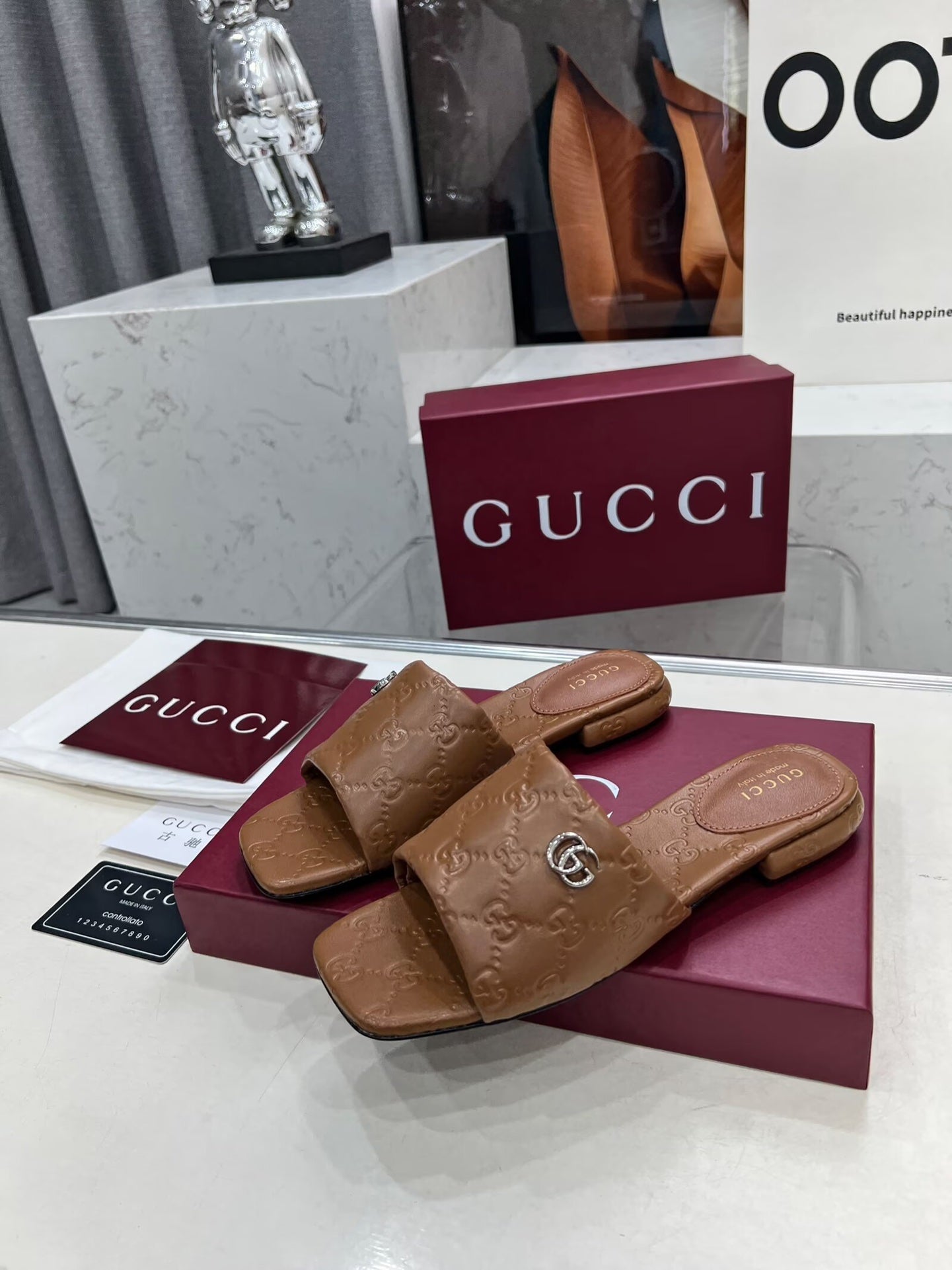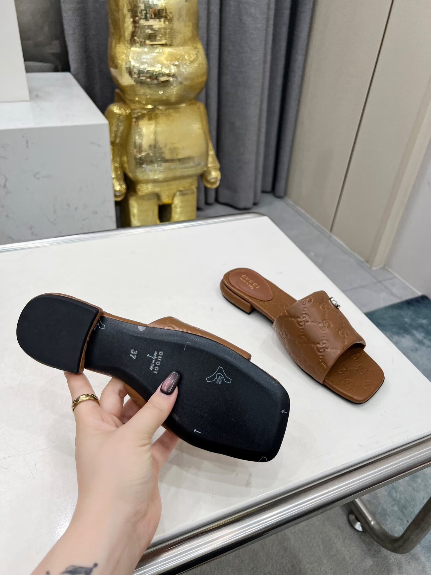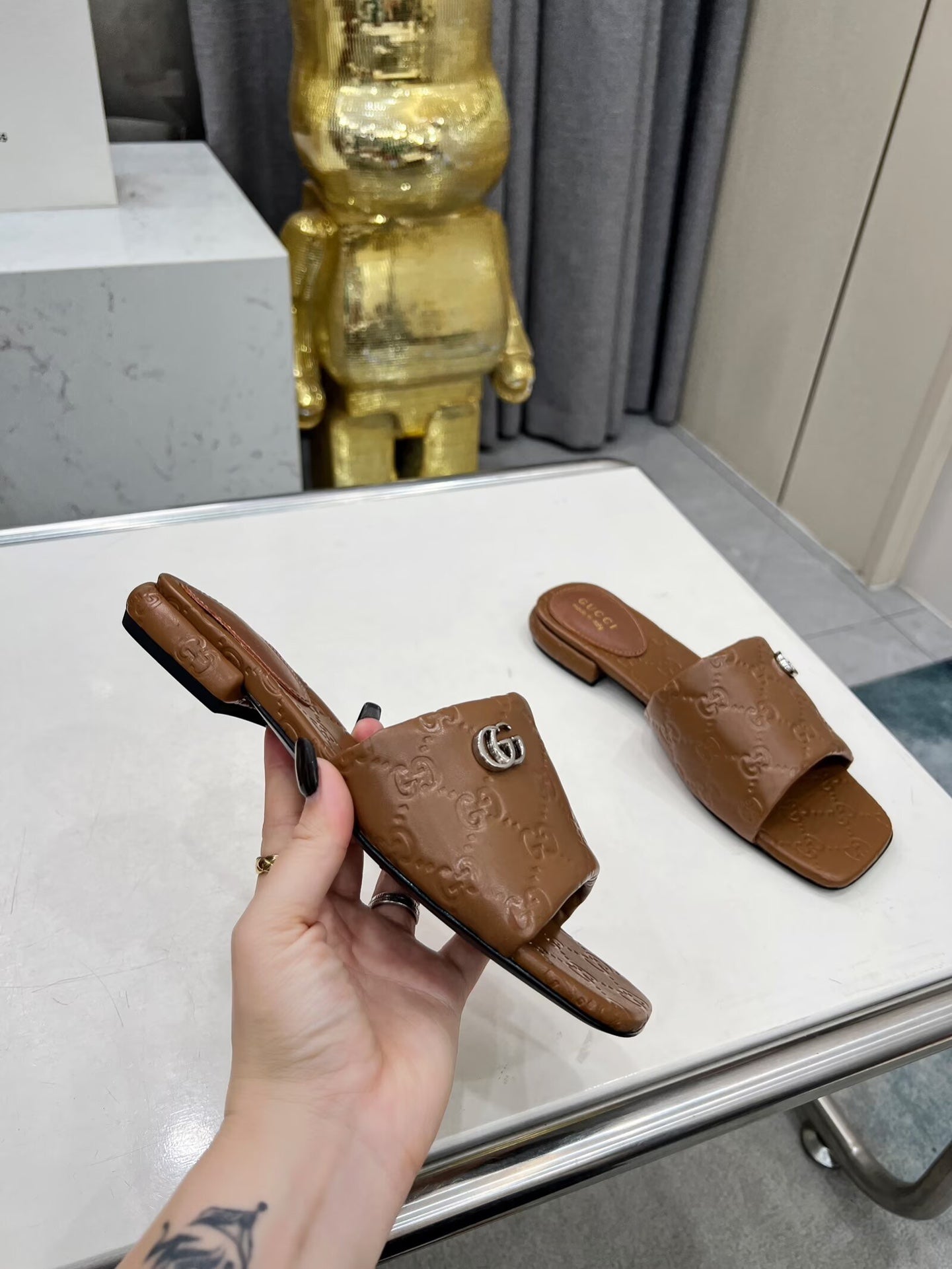 GG CASUAL SLIPPERS IN BROWN CALFSKIN LOGO EMBOSSING