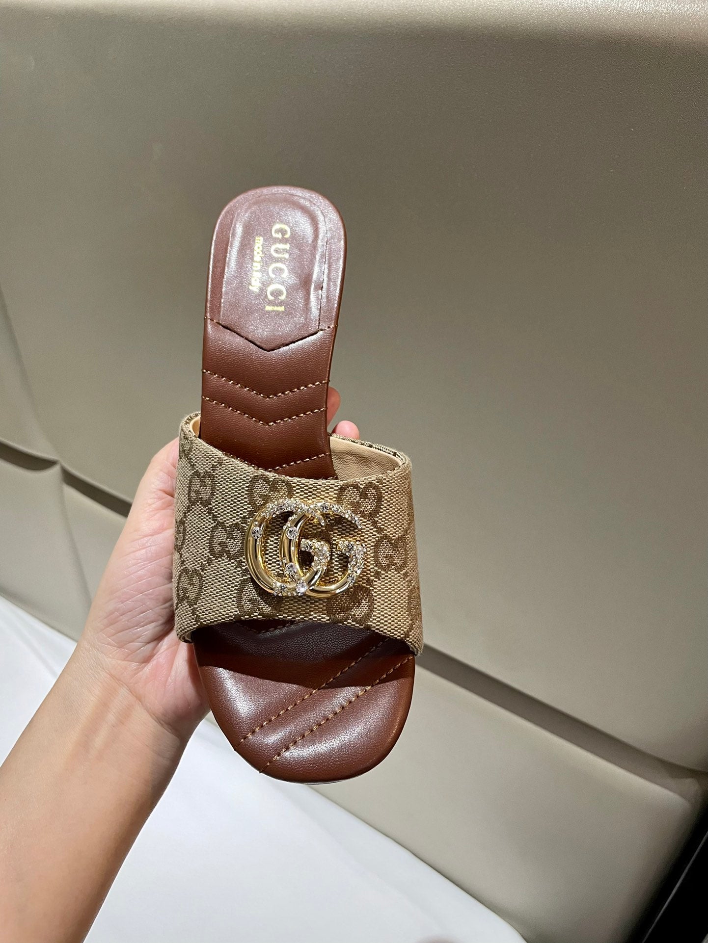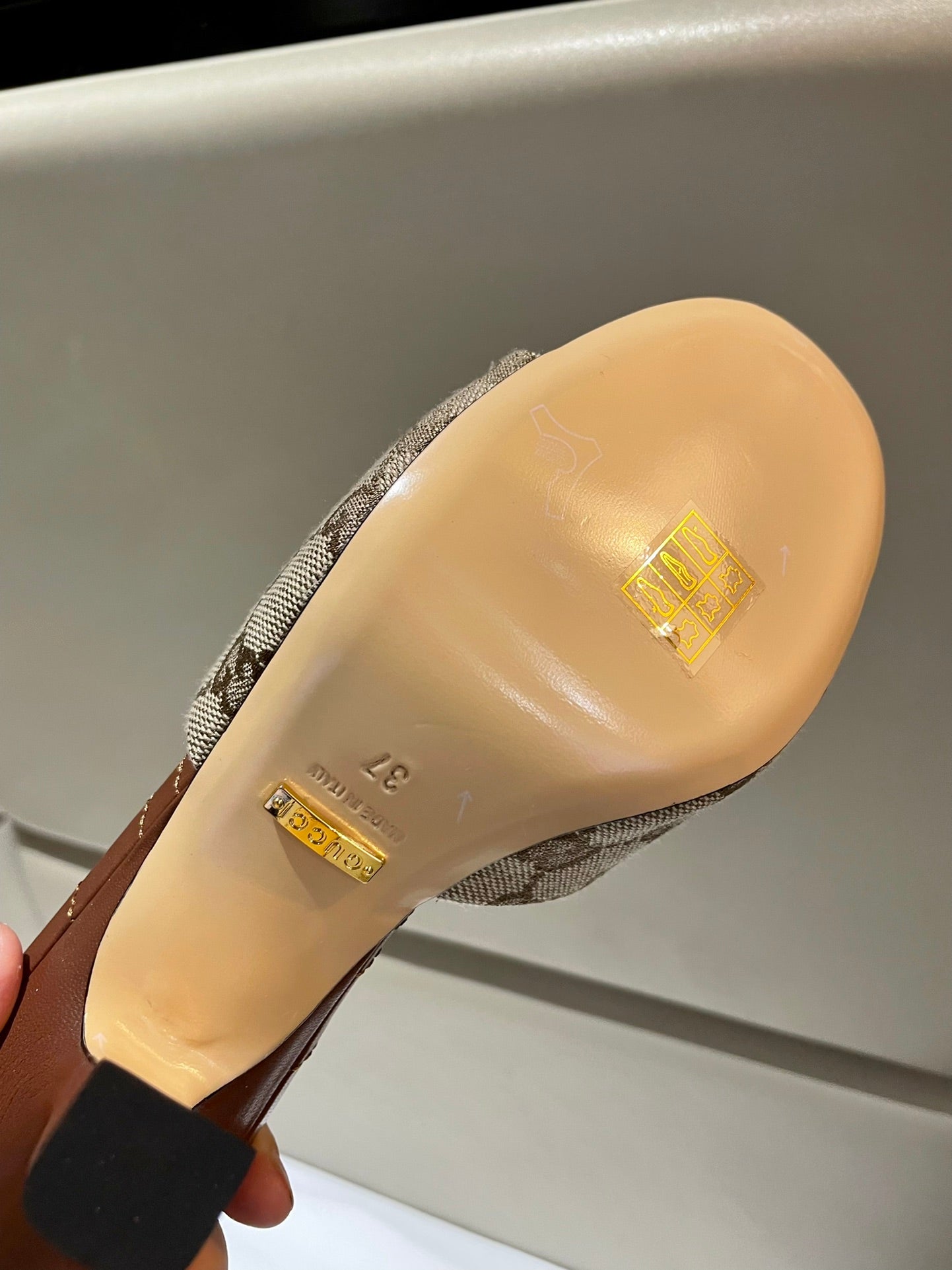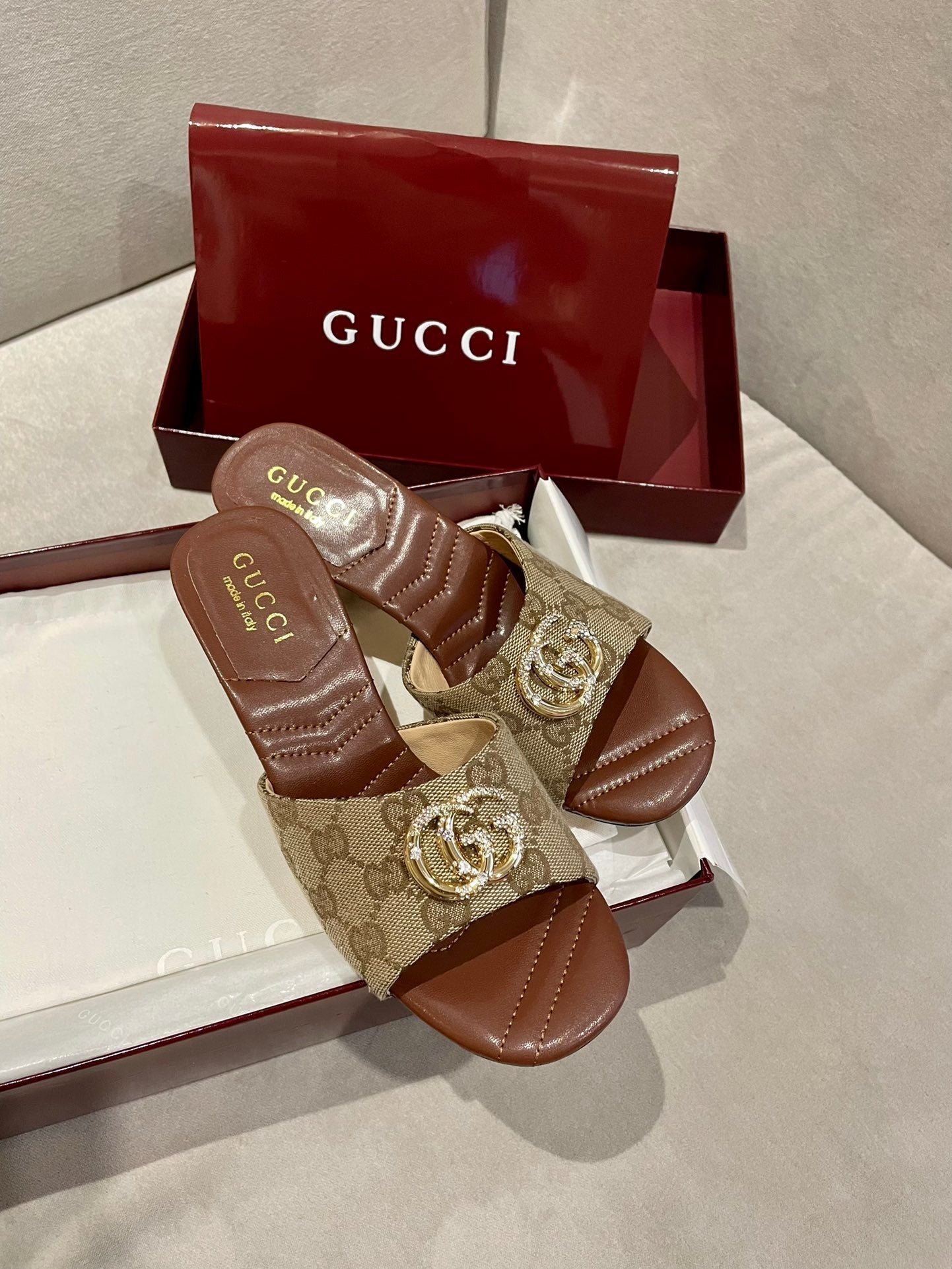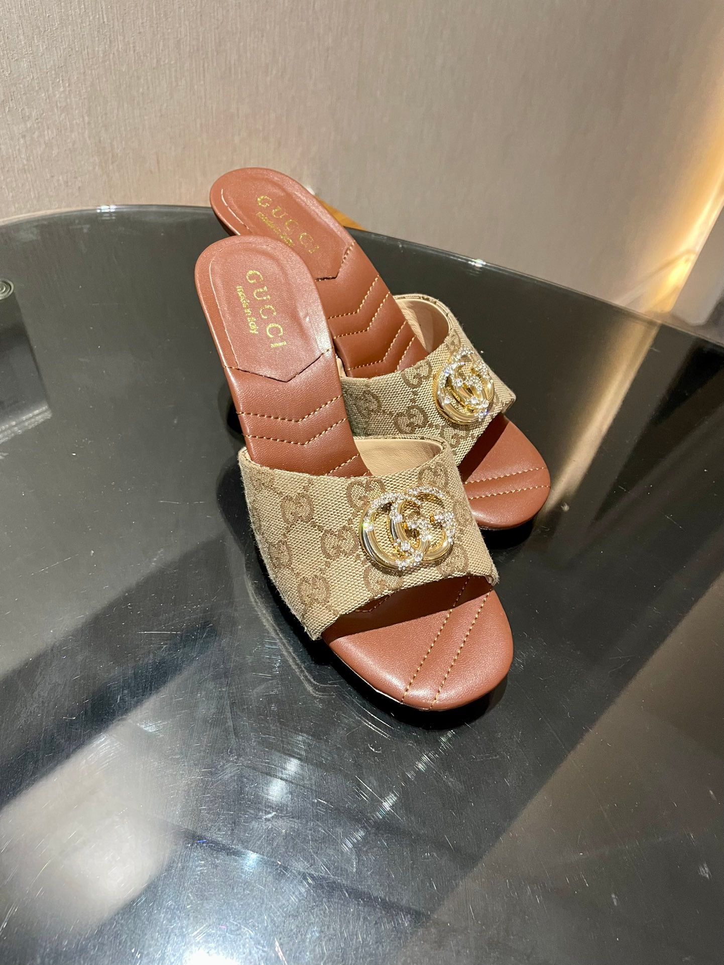GG HIGH HEELS 70 IN BROWN LAMBSKIN GOLD HARDWARE WITH CRYSTALS