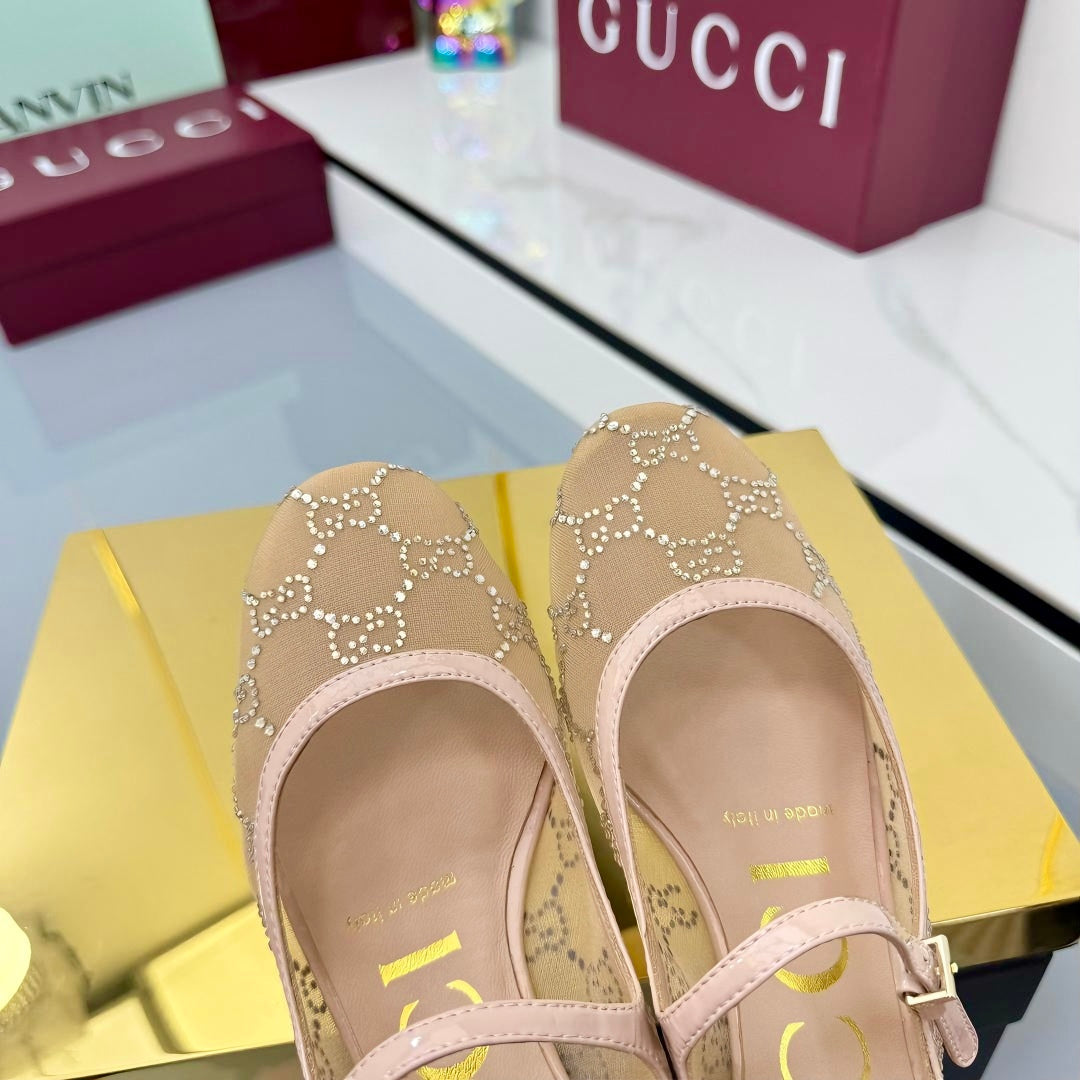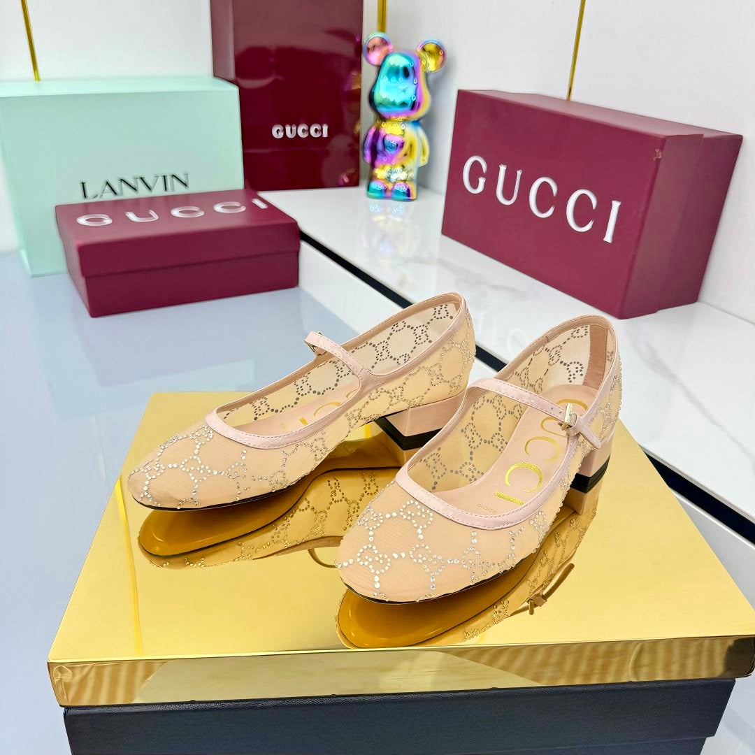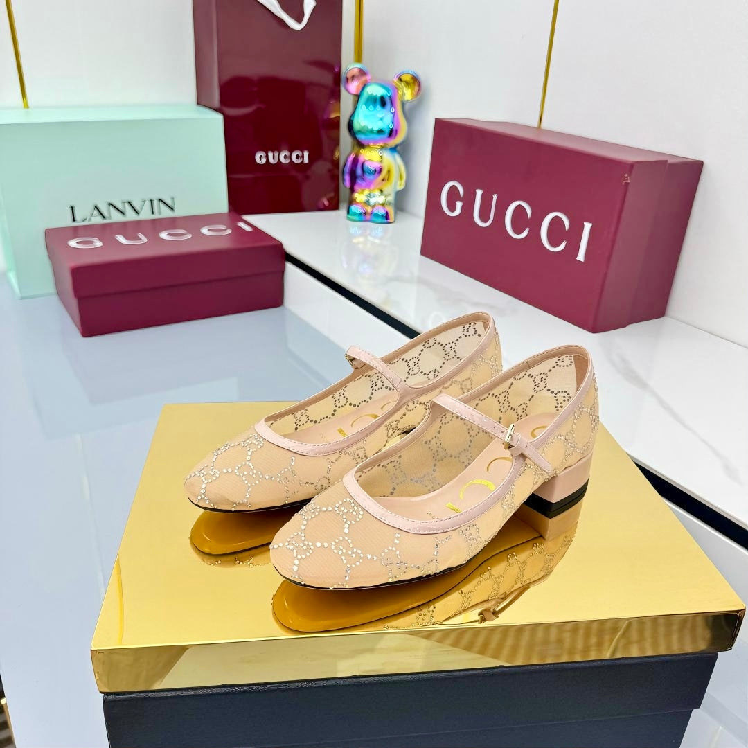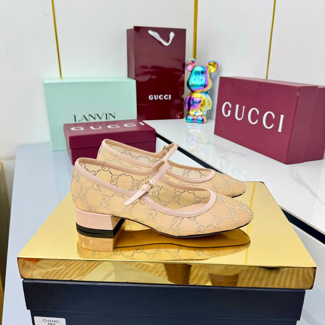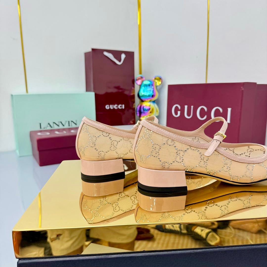 GG MARY JANE HEEL 25S 25 MM IN CAMEL BEIGE SEQUINED MESH FABRIC