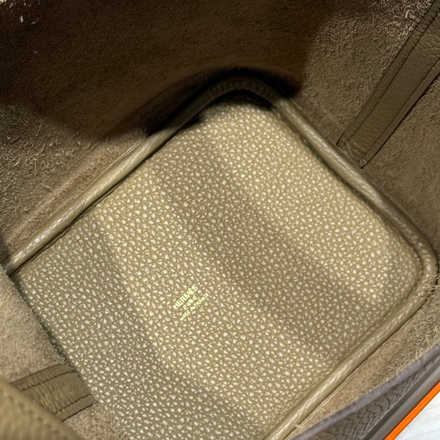 HERMES 25S PICOTIN LOCK 18 IN OLIVE GOLD CALFSKIN GOLD HARDWARE