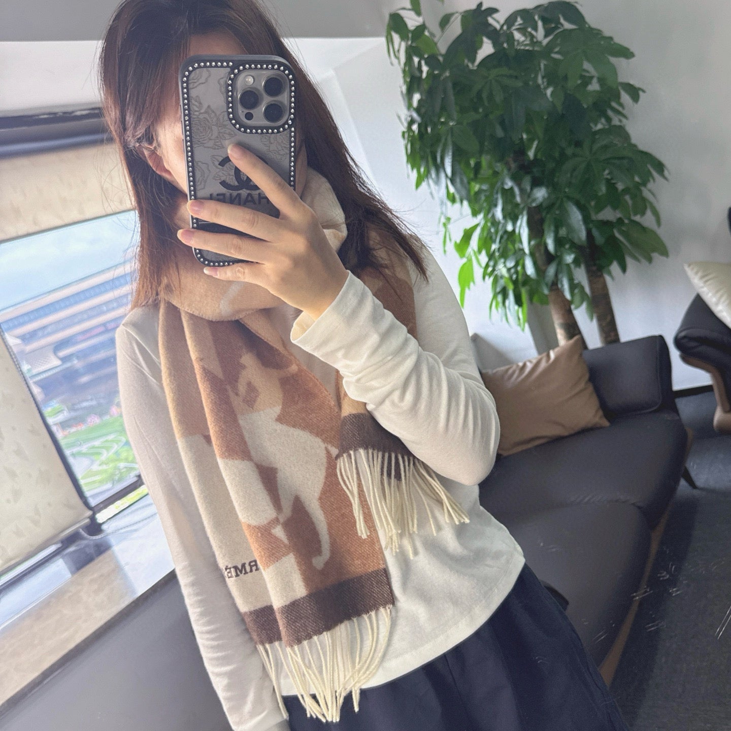 HERMES 25S SCARF 170 IN CASHMERE 854667