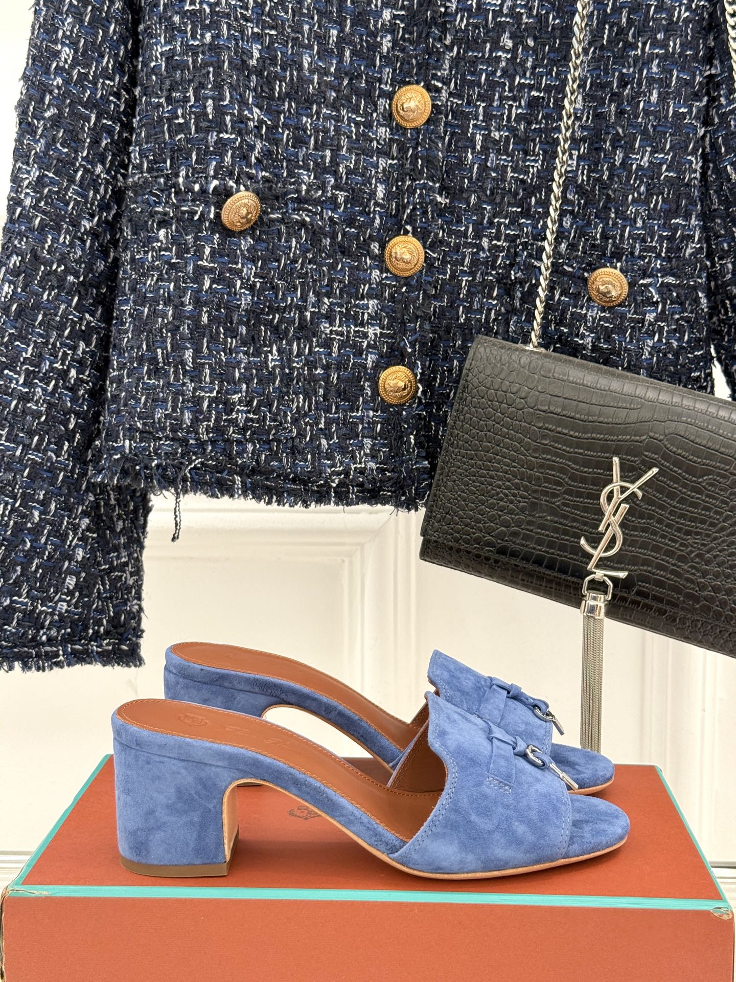 HIGH HEELS IN BLUE SUEDE AND LAMBSKIN