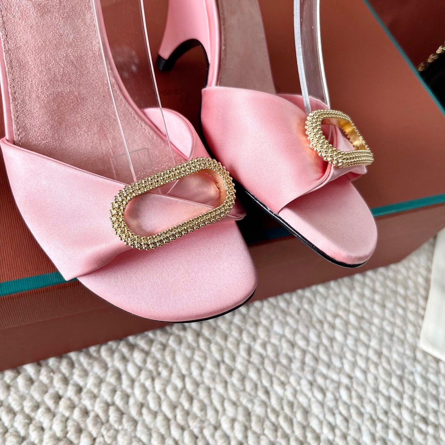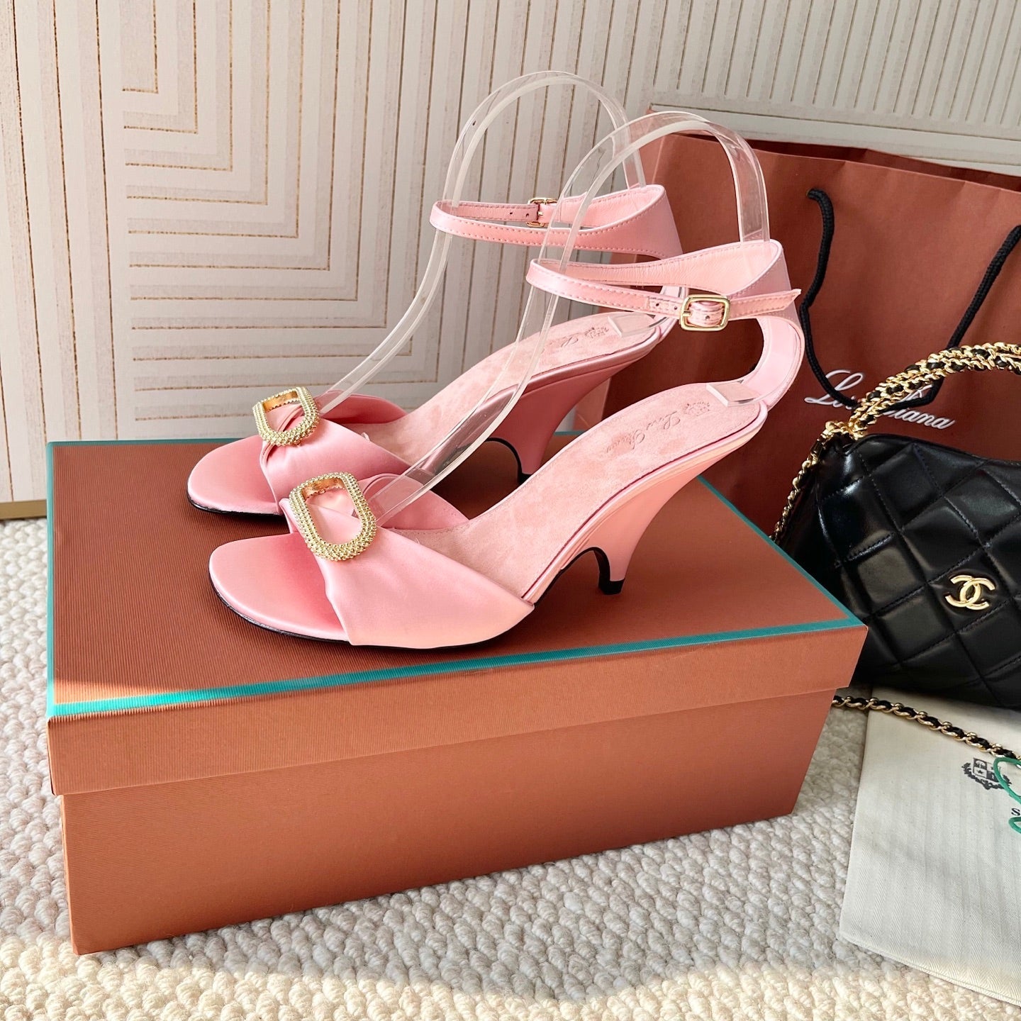 HIGH HEELS SANDALS 80 MM IN PASTEL PINK SATIN MIX SUEDUE