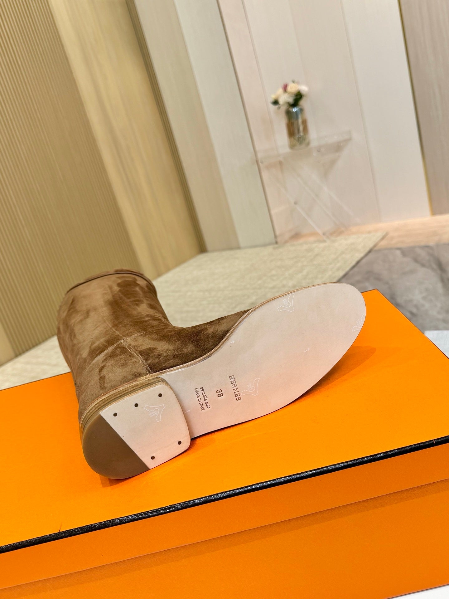 HM 25S JUMPING KNEE-HIGH BOOTS IN BROWN SUEDE WITH SILVER HARDWARE
