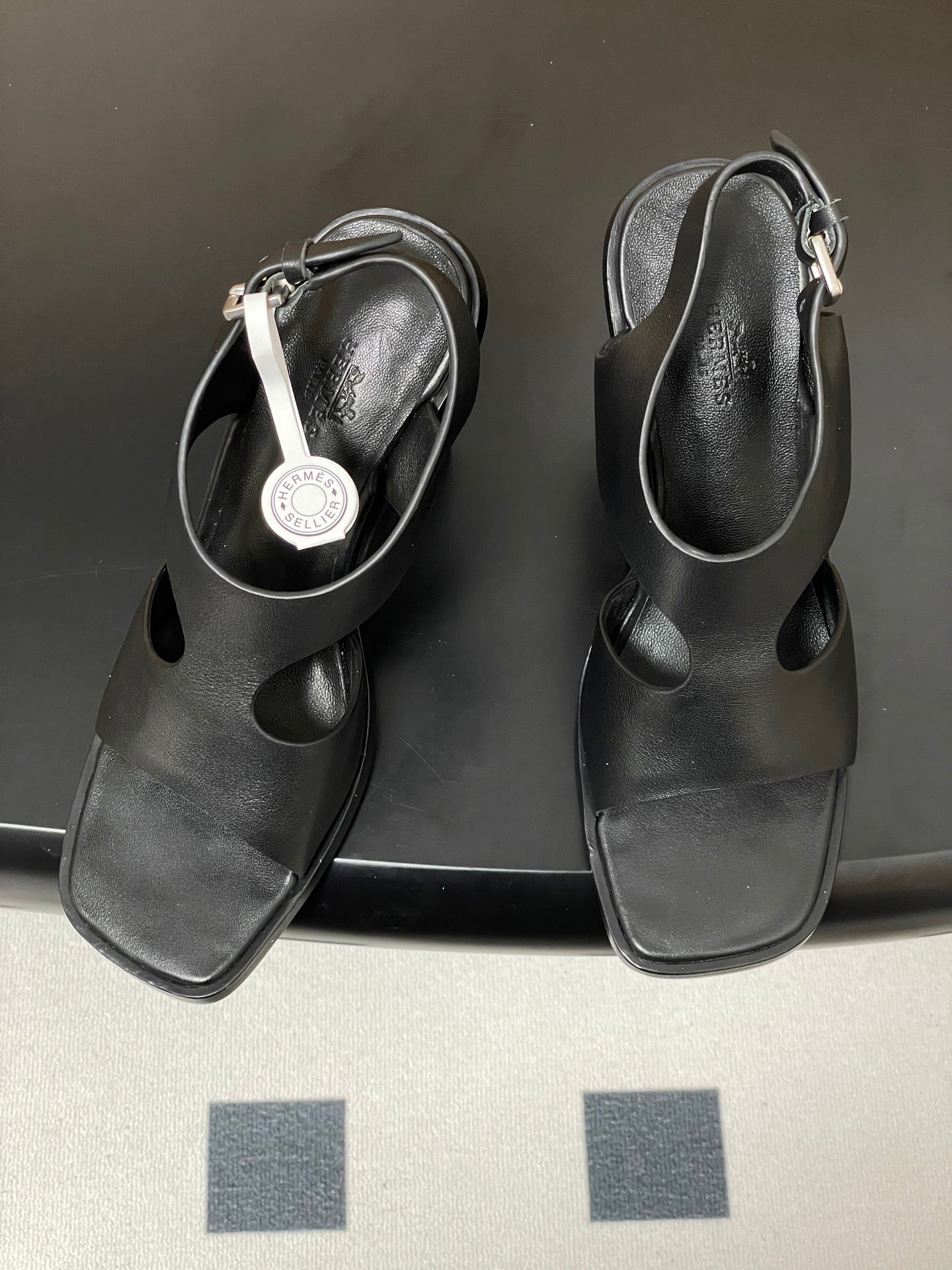 HM 25S KALYA WEDGE SANDAL 100 MM IN BLACK LAMBSKIN