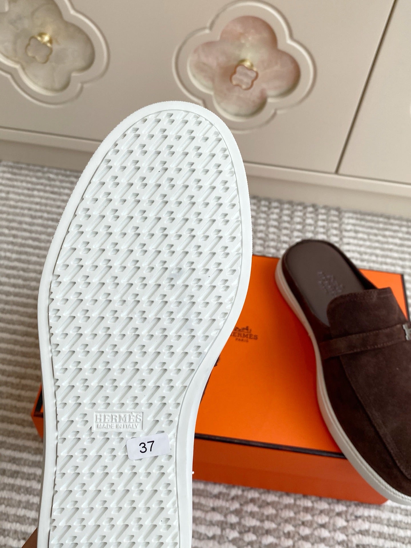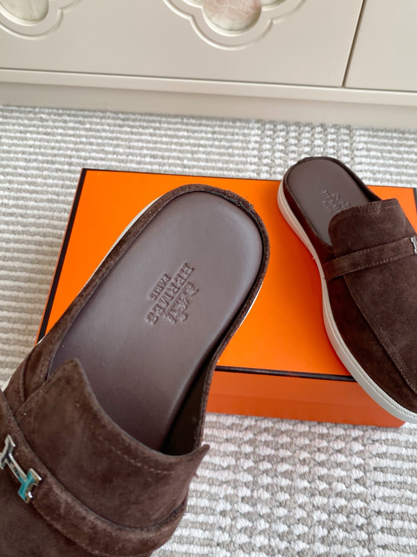 HM 25S MULES IN DARK BROWN SUEDE WITH SILVER HARDWARE
