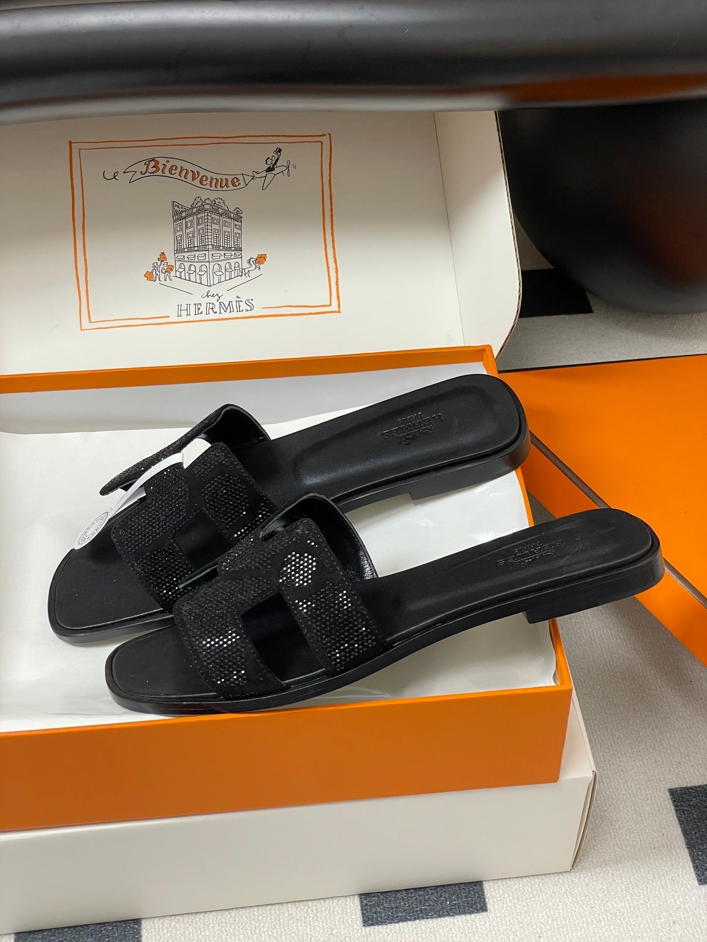 HM 25S ORAN SANDAL IN BLACK LAMBSKIN WITH STONE DETAILS