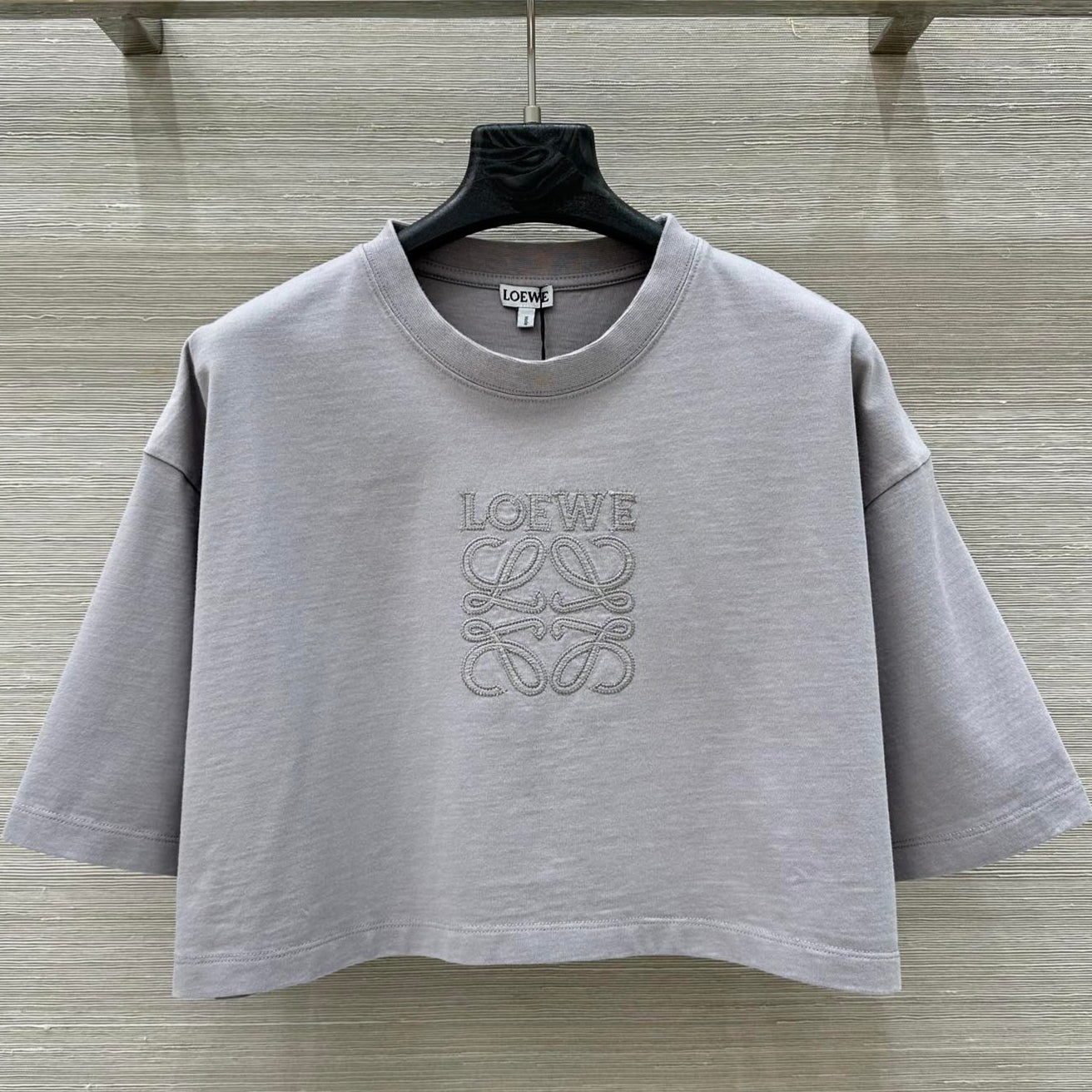 Loewe 25 Cropped Anagram T-Shirt Light Grey Cotton
