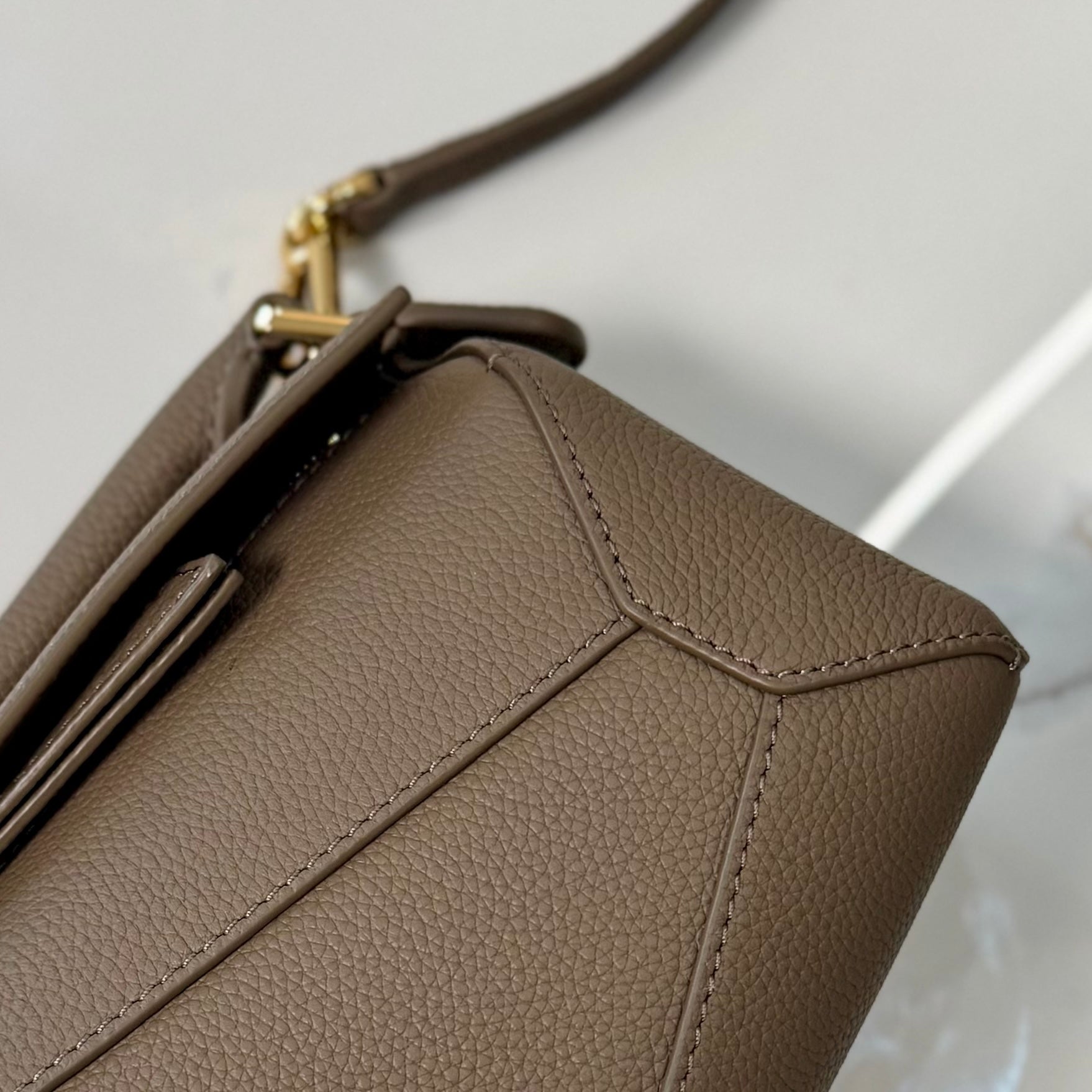 LOEWE 25S PUZZLE EDGE BAG 18 IN WALNUT BROWN CALFSKIN GOLD HARDWARE