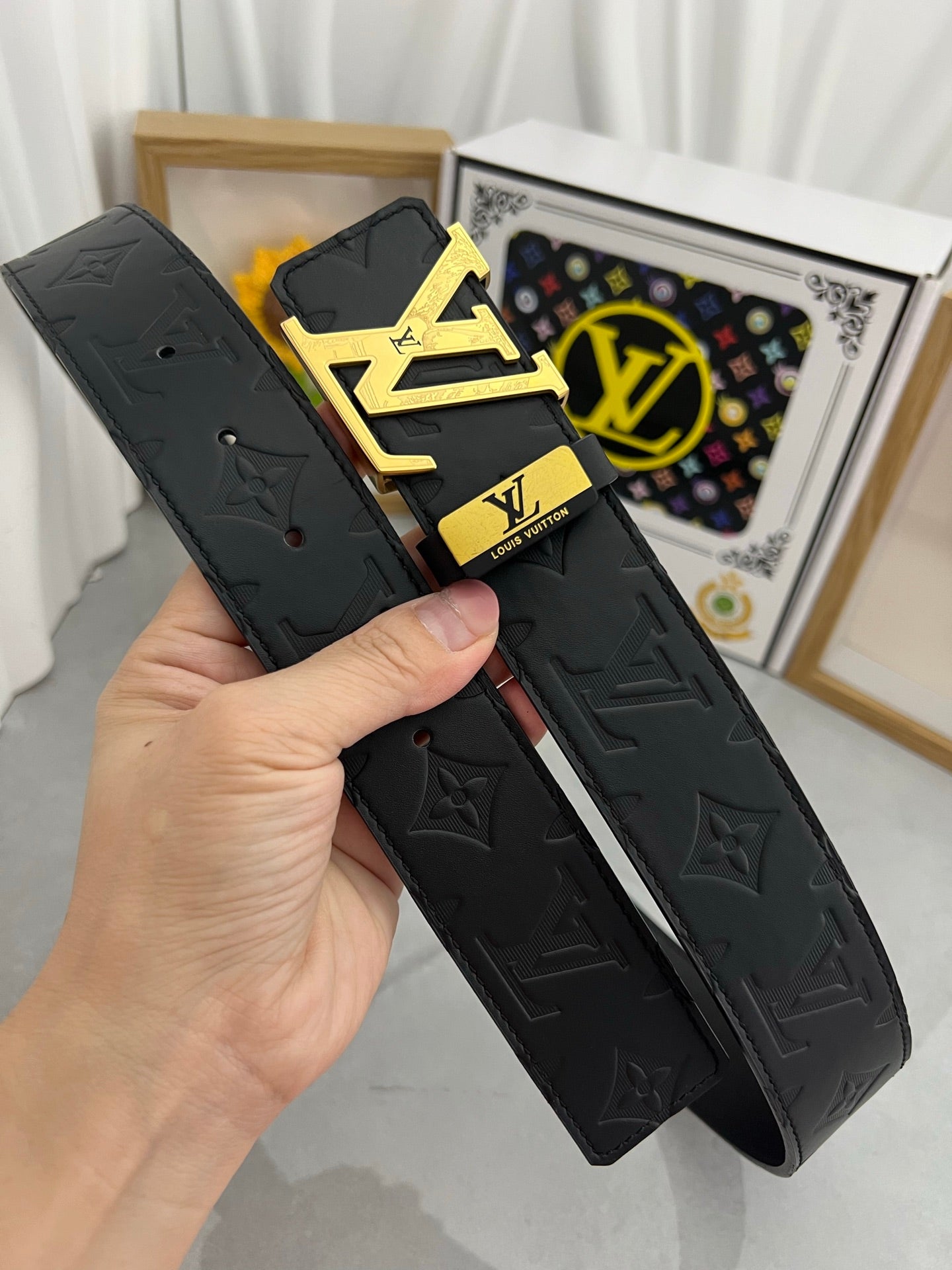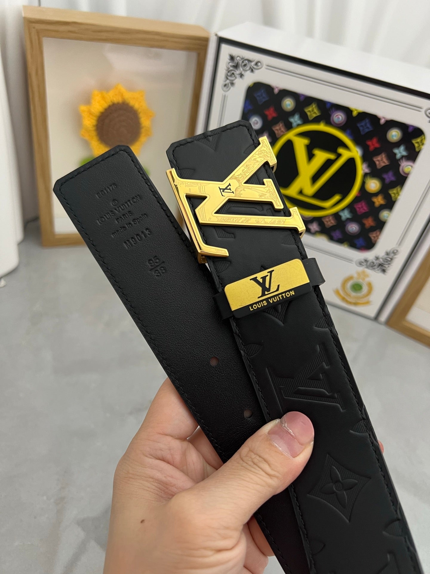 LV 25S BELT 38 MM IN BLACK CALFSKIN STAMP LOGO 593296