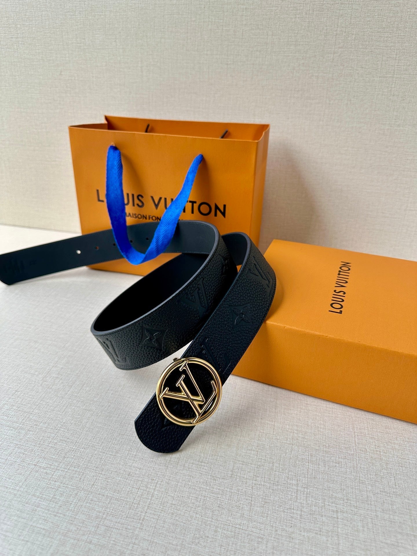 LV 25S BELT 40 MM IN BLACK CALFSKIN WITH GOLD HARDWARE 593263