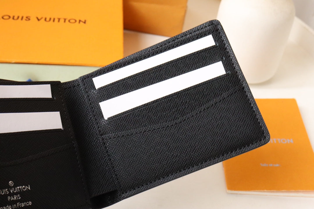 LV 25S SLENDER WALLET 11 IN BLACK TAIGA CALFSKIN