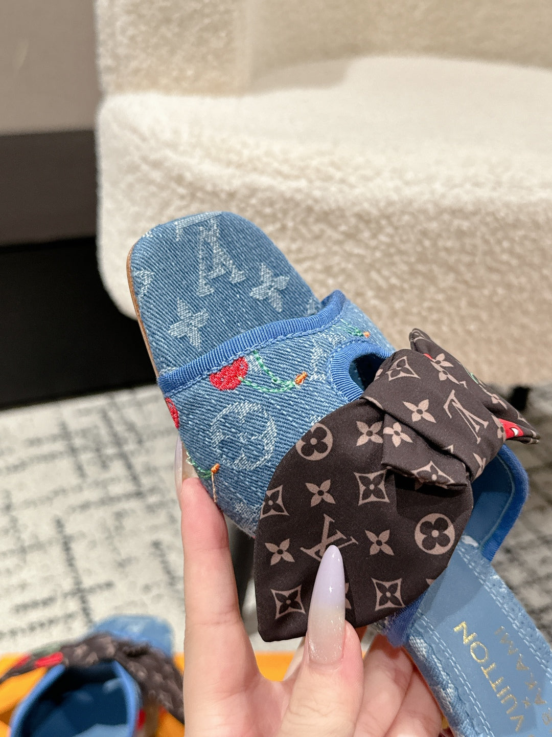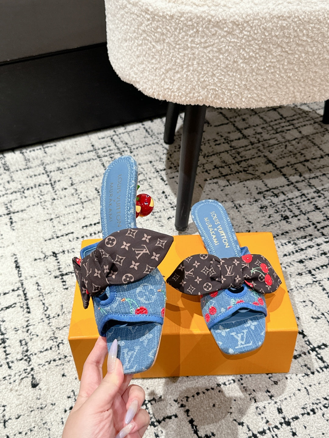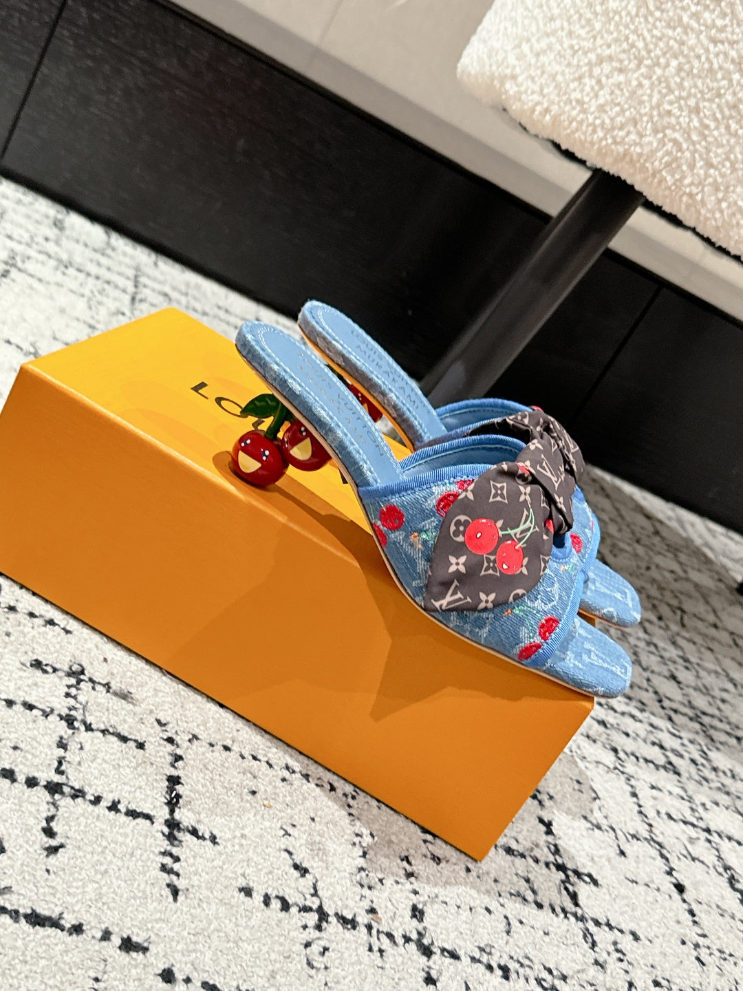 LV CHERRY HIGH HEELS 25S IN BLUE DENIM WITH BOW STYLE 3