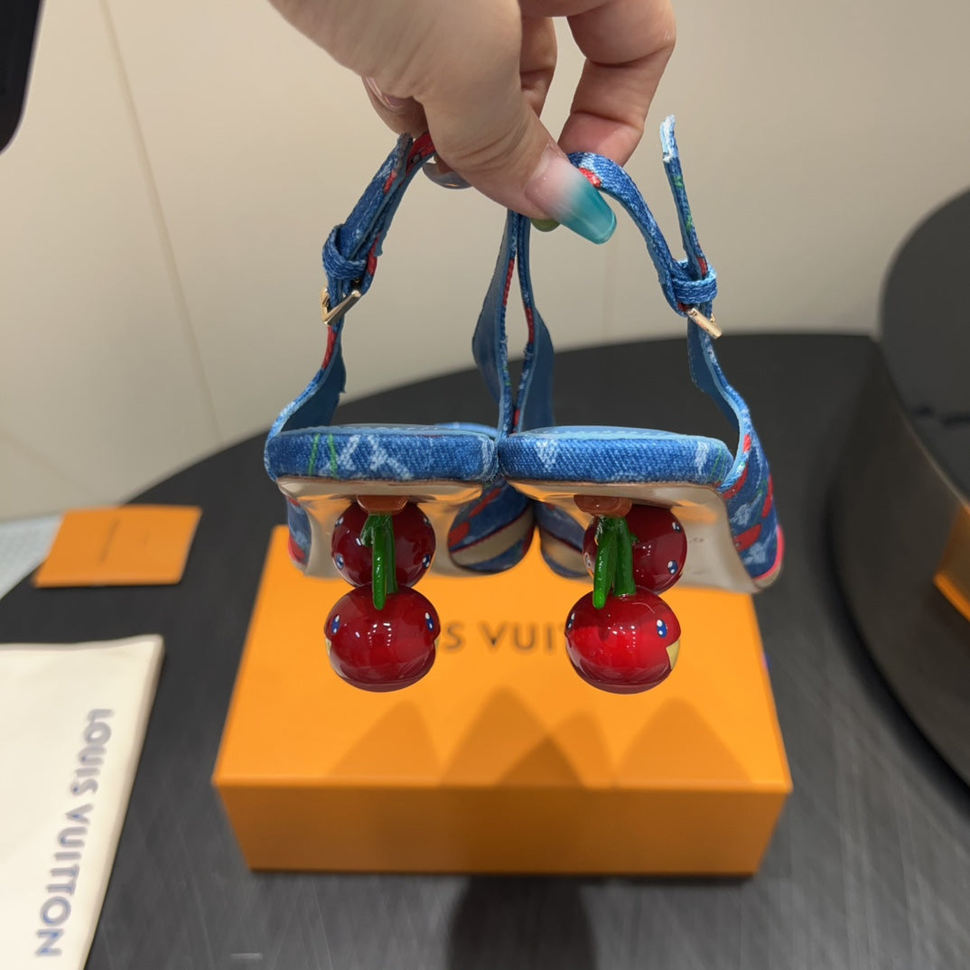 LV HIGH SLINGBACK LOGO AND CHERRY PRINT 25S 55MM IN BLUE DENIM