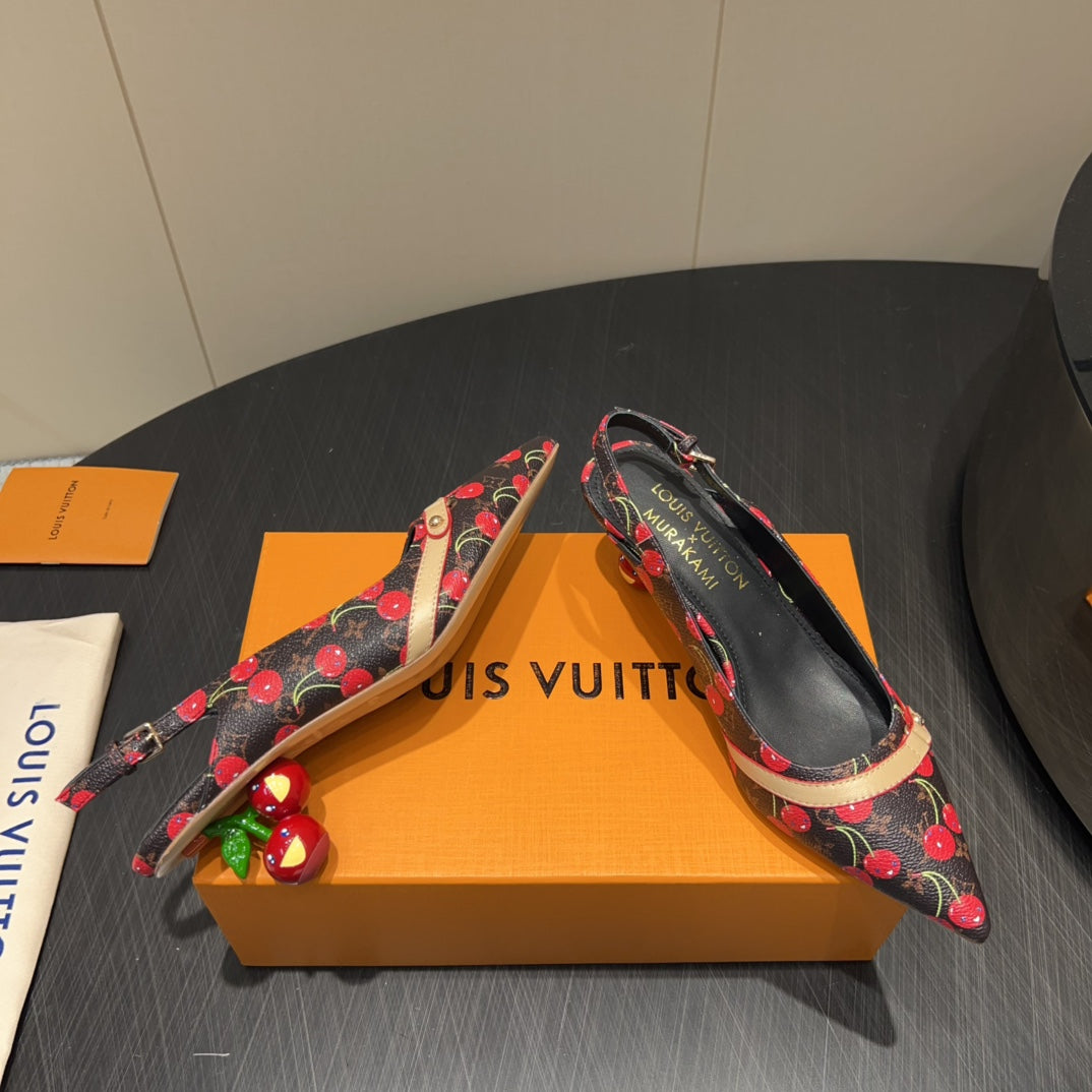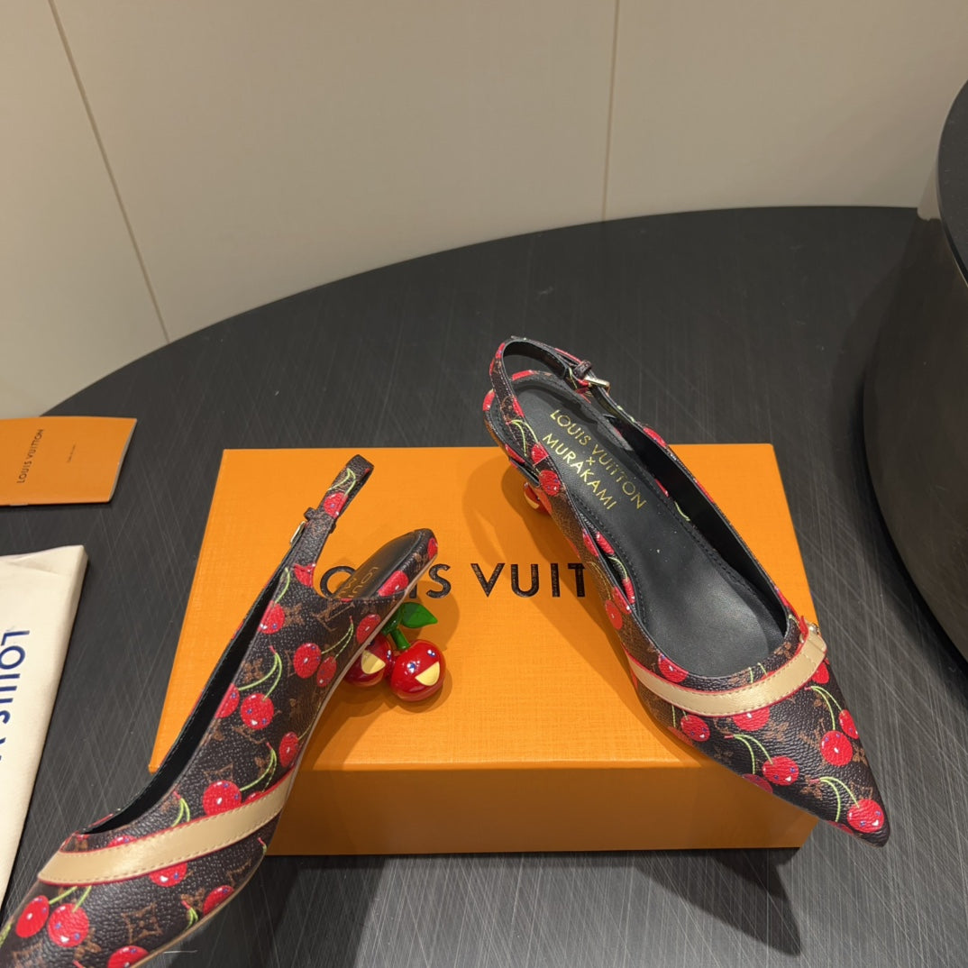 LV HIGH SLINGBACK LOGO AND CHERRY PRINT 25S 55MM IN DARK BROWN CALFSKIN