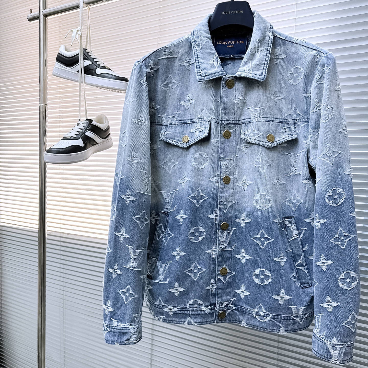 LV SHIRT JACKET IN LIGHT BLUE RIPPED MONOGRAM DENIM 239123