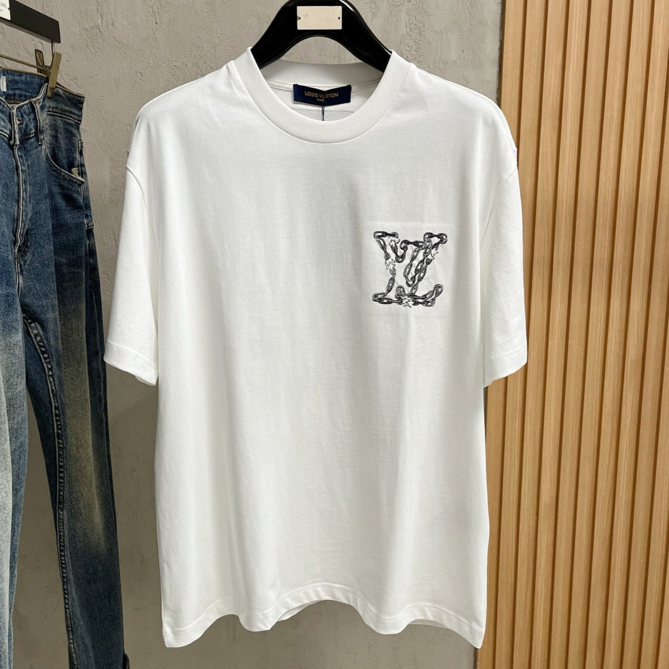 LV WHITE COTTON T-SHIRT EMBROIDERED LOGO 238861