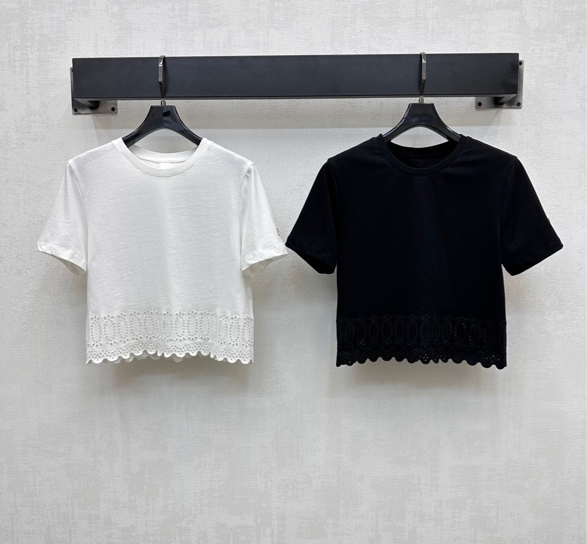 LV T-SHIRT WITH LACE-TRIMMED HEM