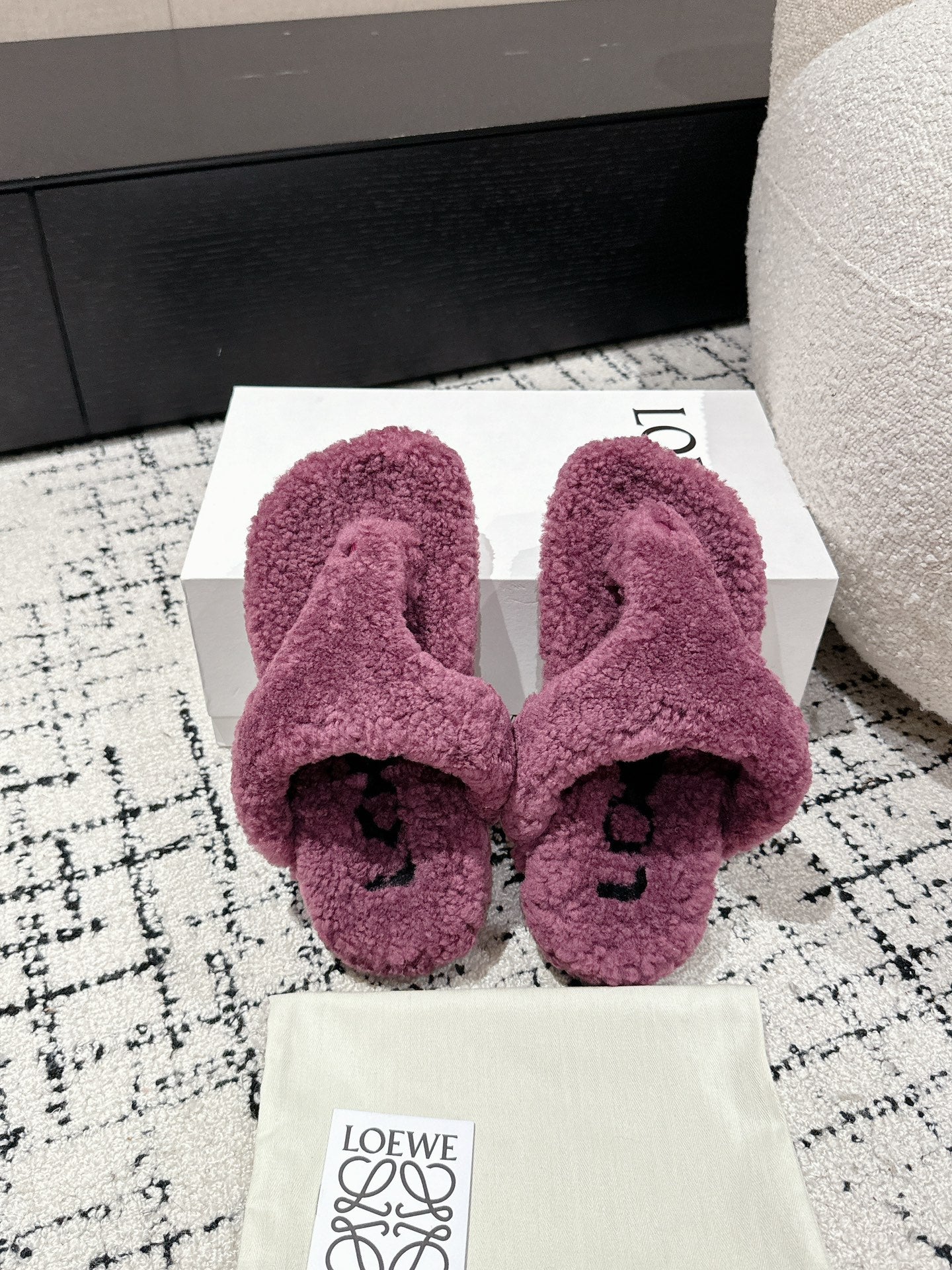 LW SHEARLING THONG SLIPPER IN GRAPE