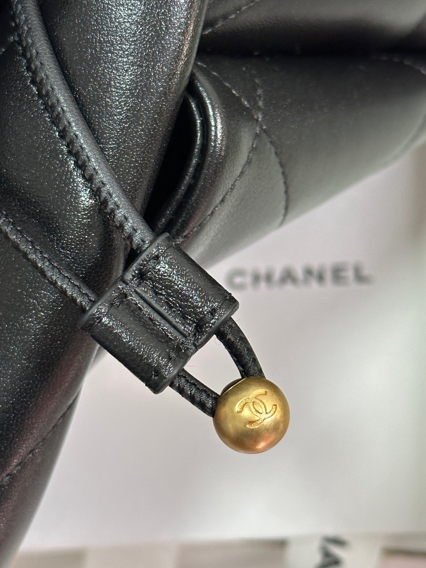 MAXI SHOPPING BAG 36 IN BLACK LAMBSKIN GOLD METALLIC
