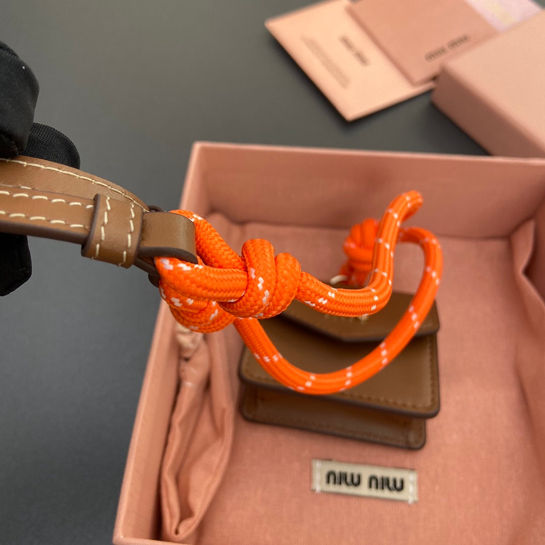 MICRO BAG 7 IN TAWNY BROWN SMOOTH LAMBSKIN ORANGE STRAP