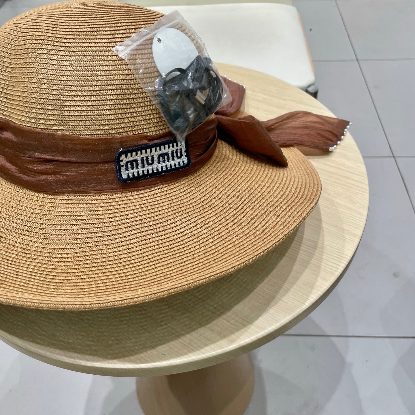 MM WIDE-BRIM BEACH HAT IN BEIGE WITH FABRIC BOW