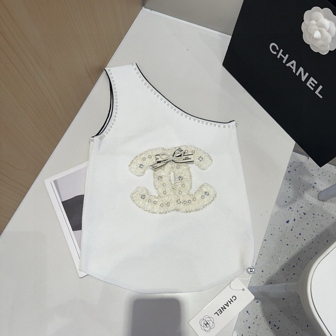ONE SHOULDER TOP 643220 IN WHITE COTTON EMBOSSED PEARL