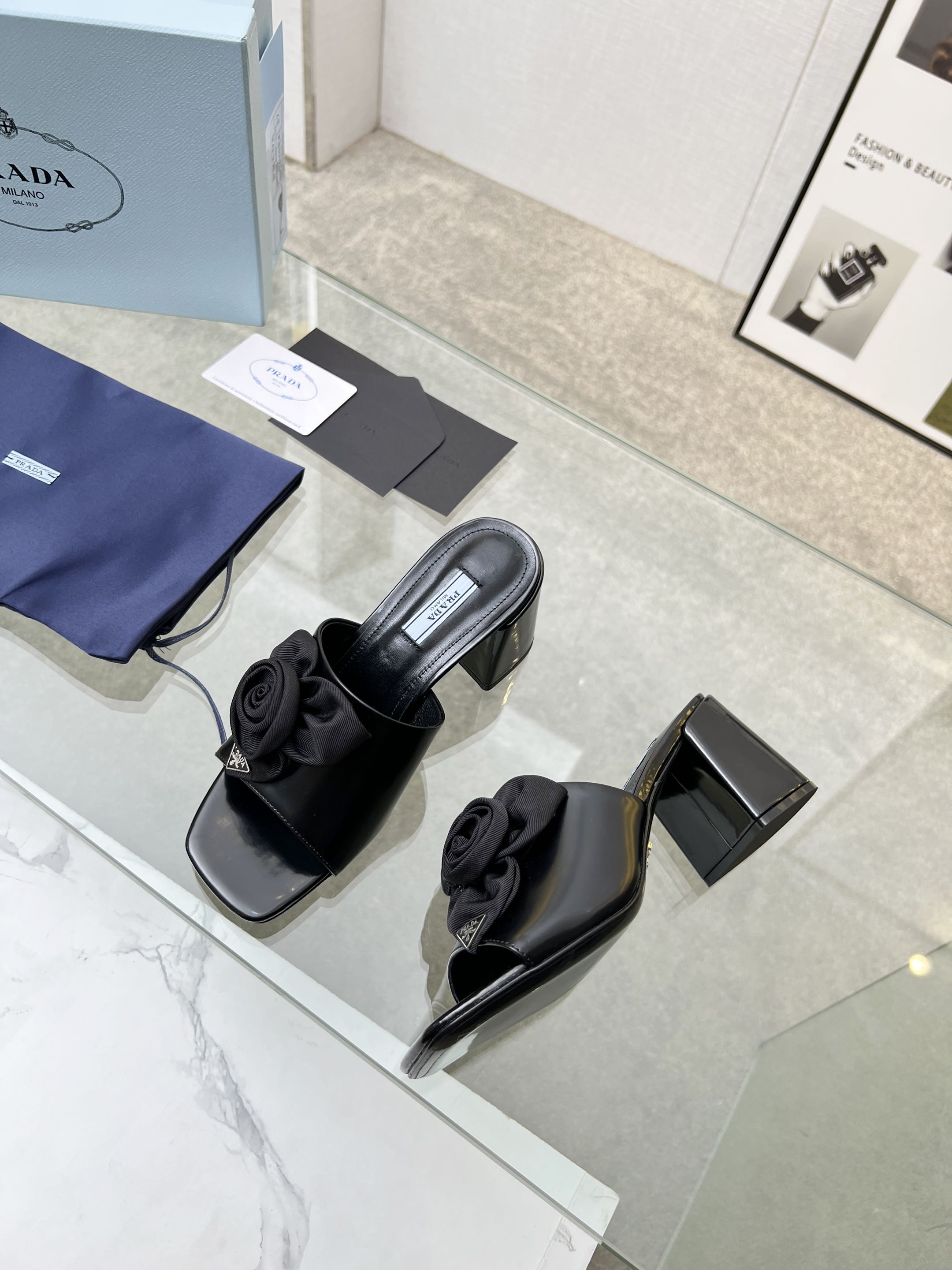 PRA FLOWER BLOCK HEELS 75 BLACK CALFSKIN