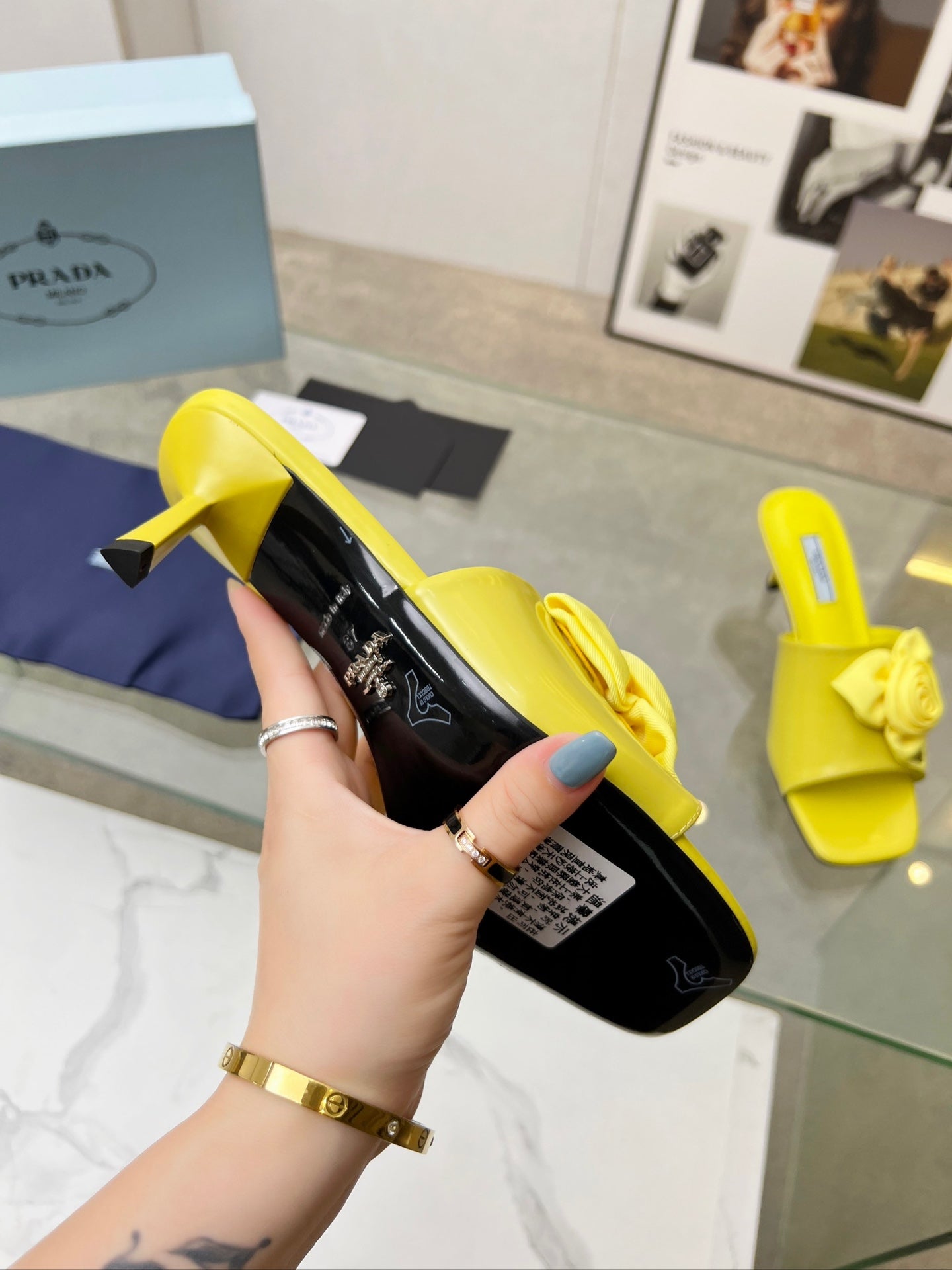 PRA FLOWER POINTED HEELS 55 LEMON CALFSKIN
