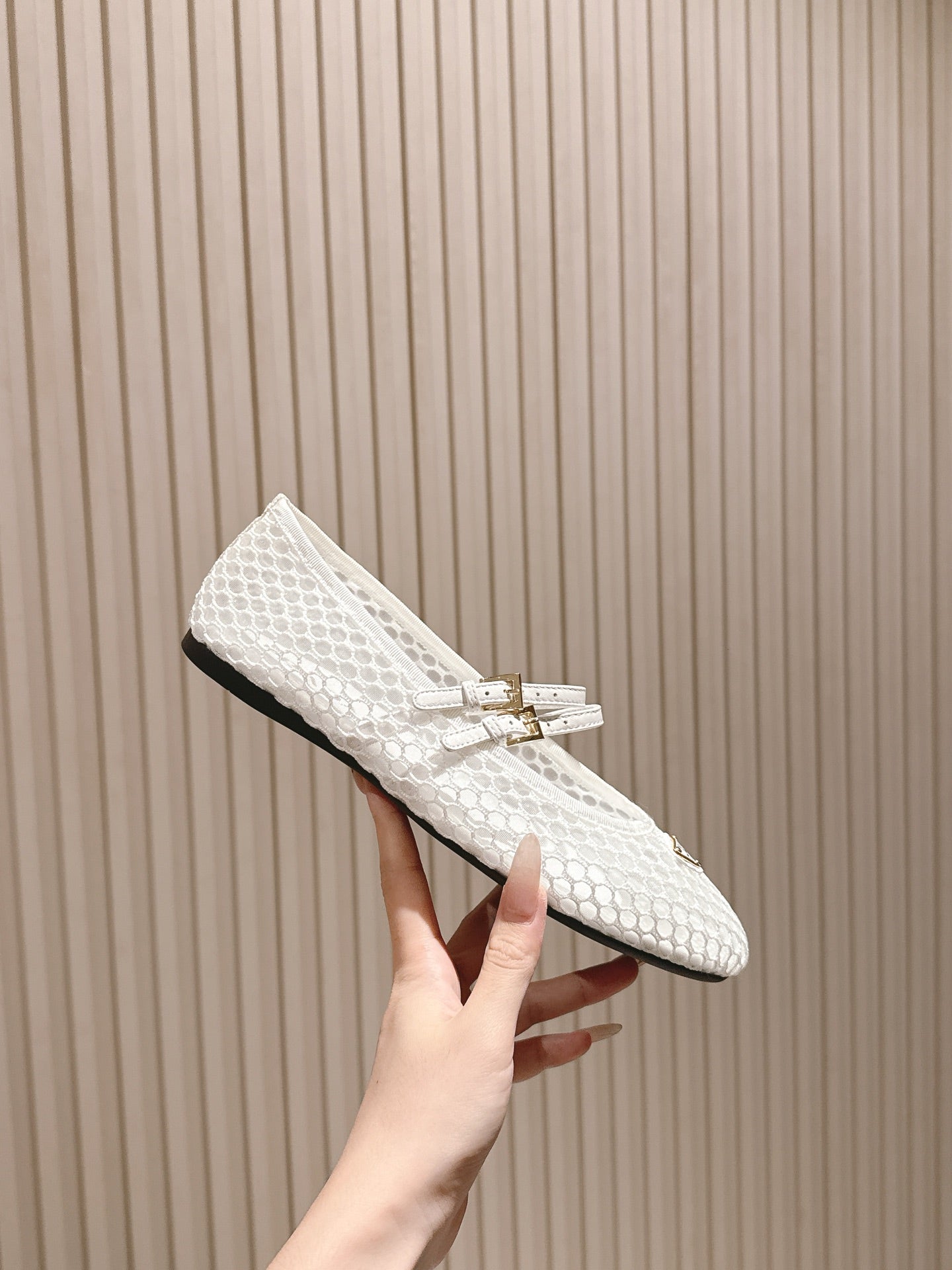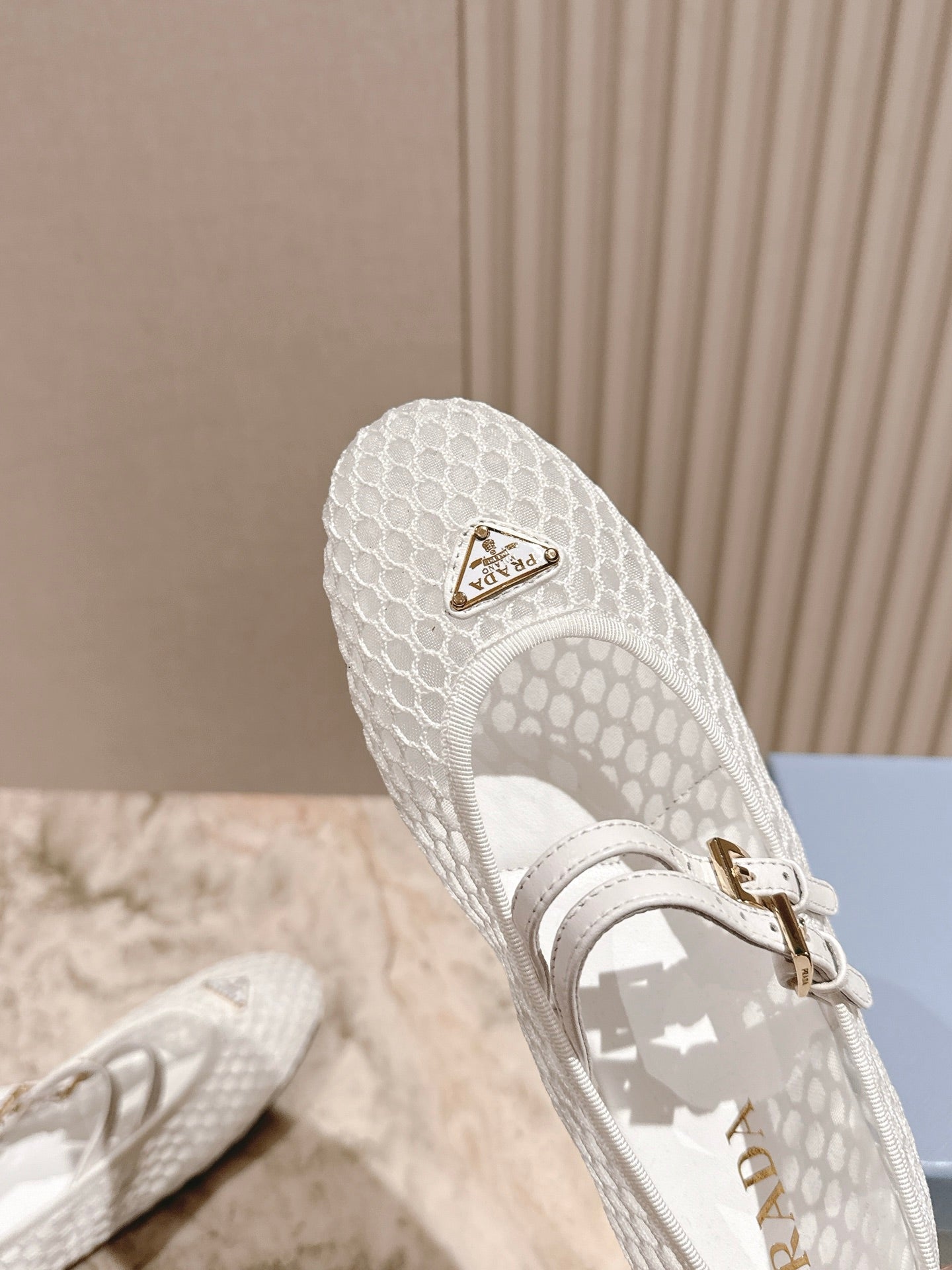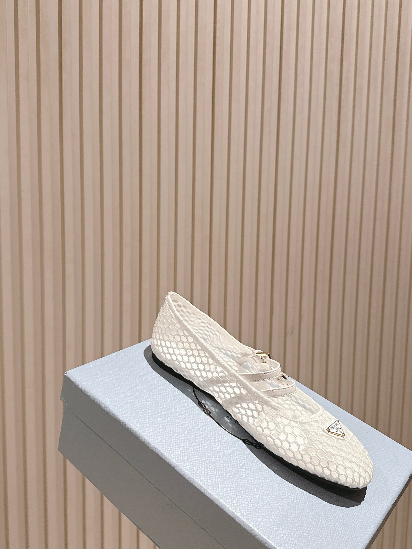 PRADA 25S BALLERINAS BALLET FLATS IN WHITE MESH FABRIC