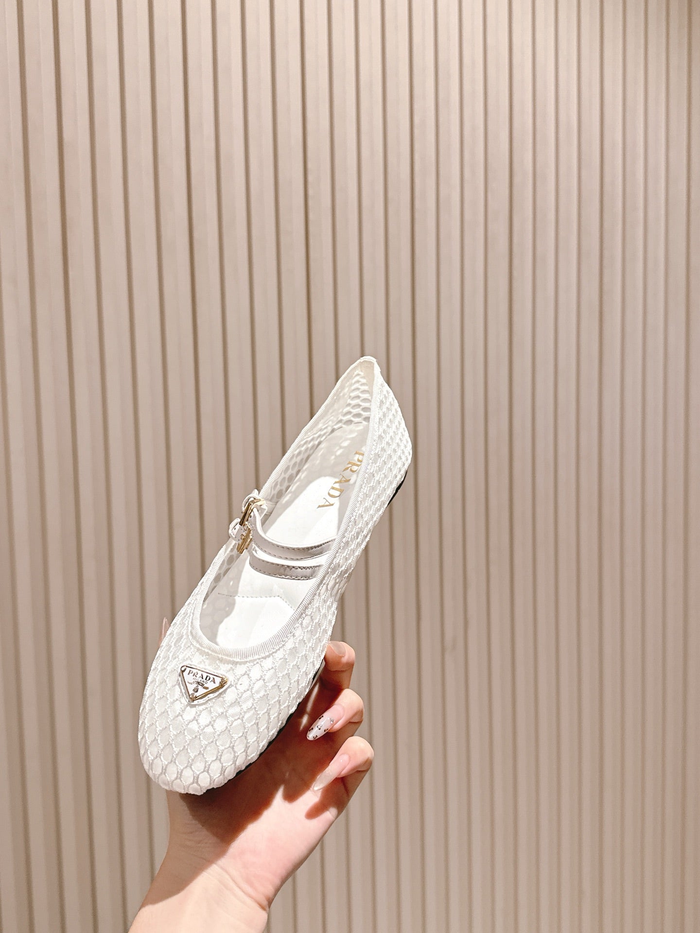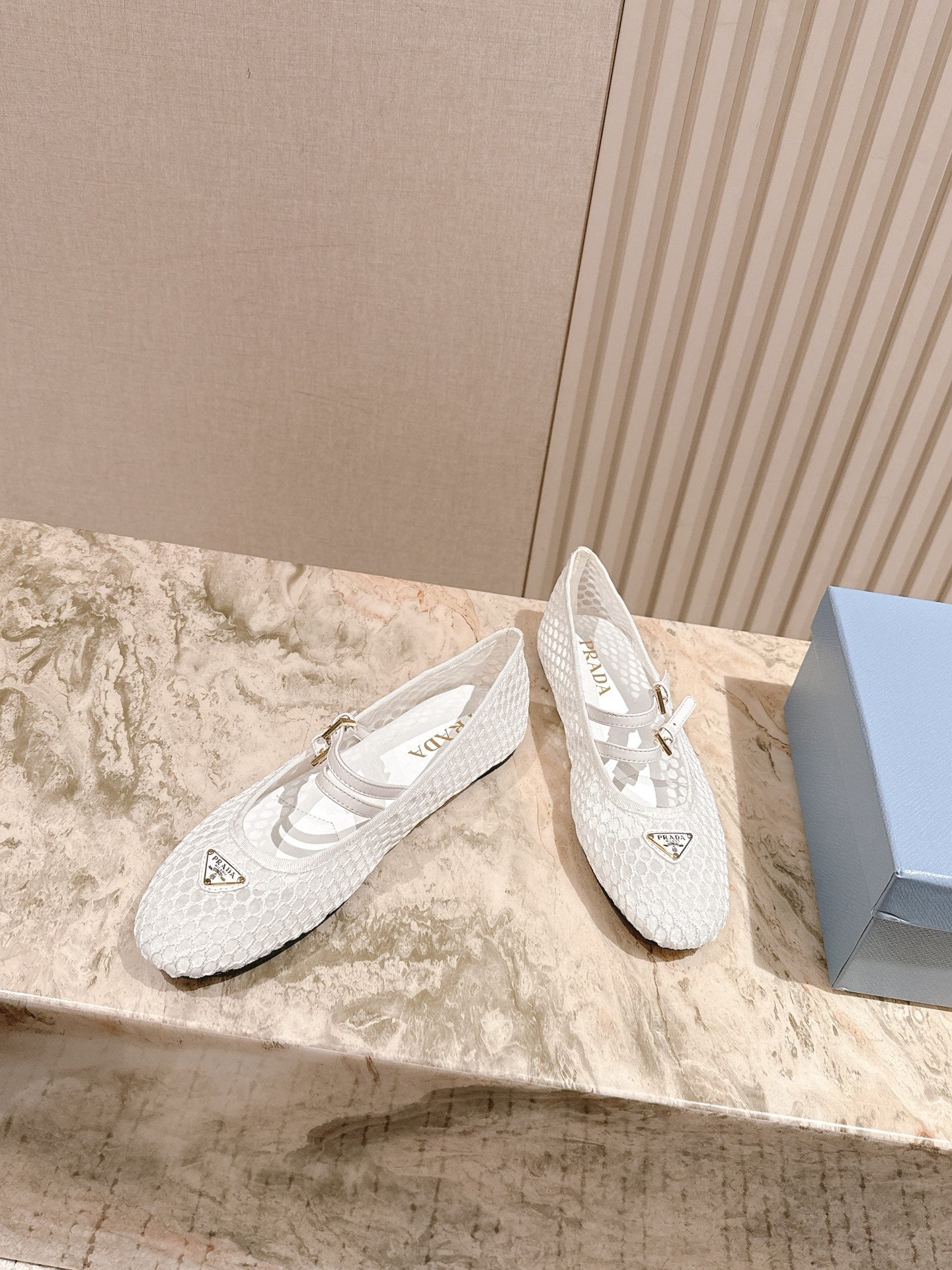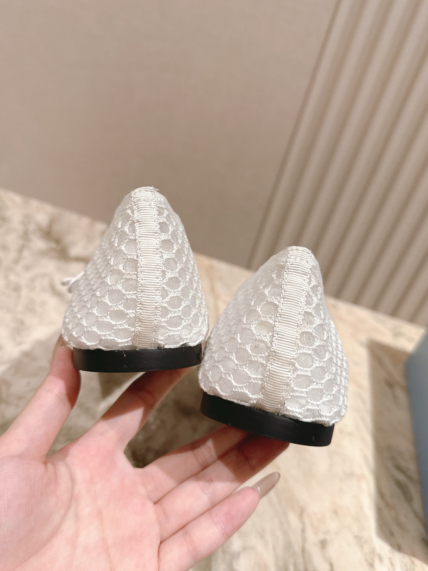 PRADA 25S BALLERINAS BALLET FLATS IN WHITE MESH FABRIC