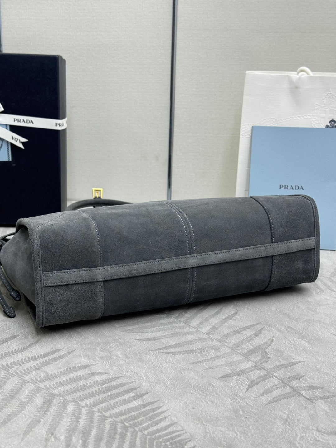 PRADA 25S BONNIE LARGE HANDBAG 38 IN DARK GRAY SUEDE GOLD HARDWARE