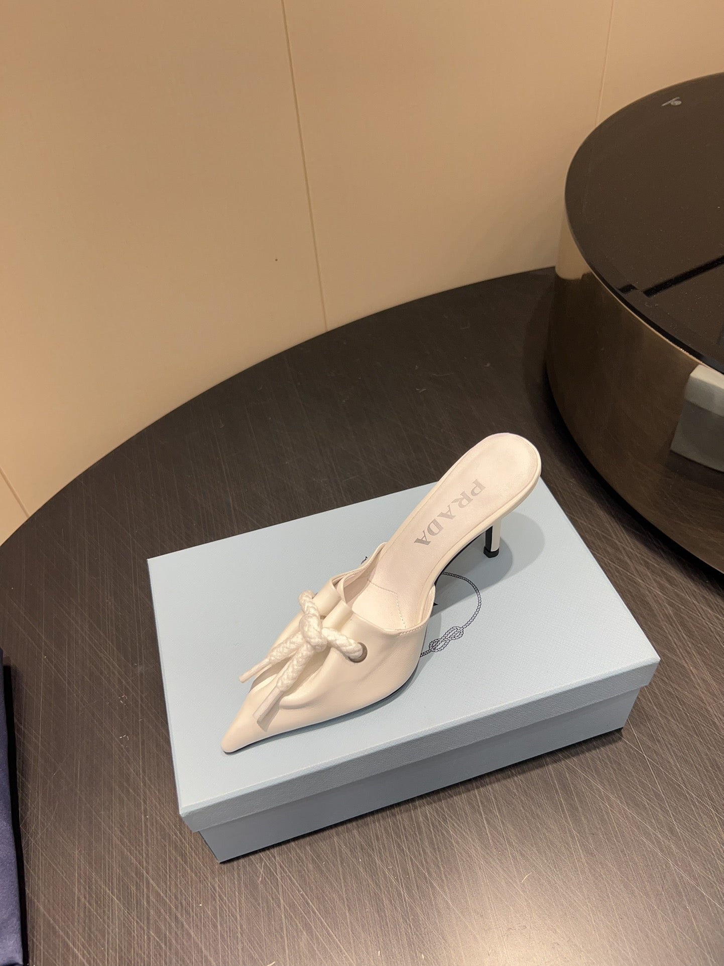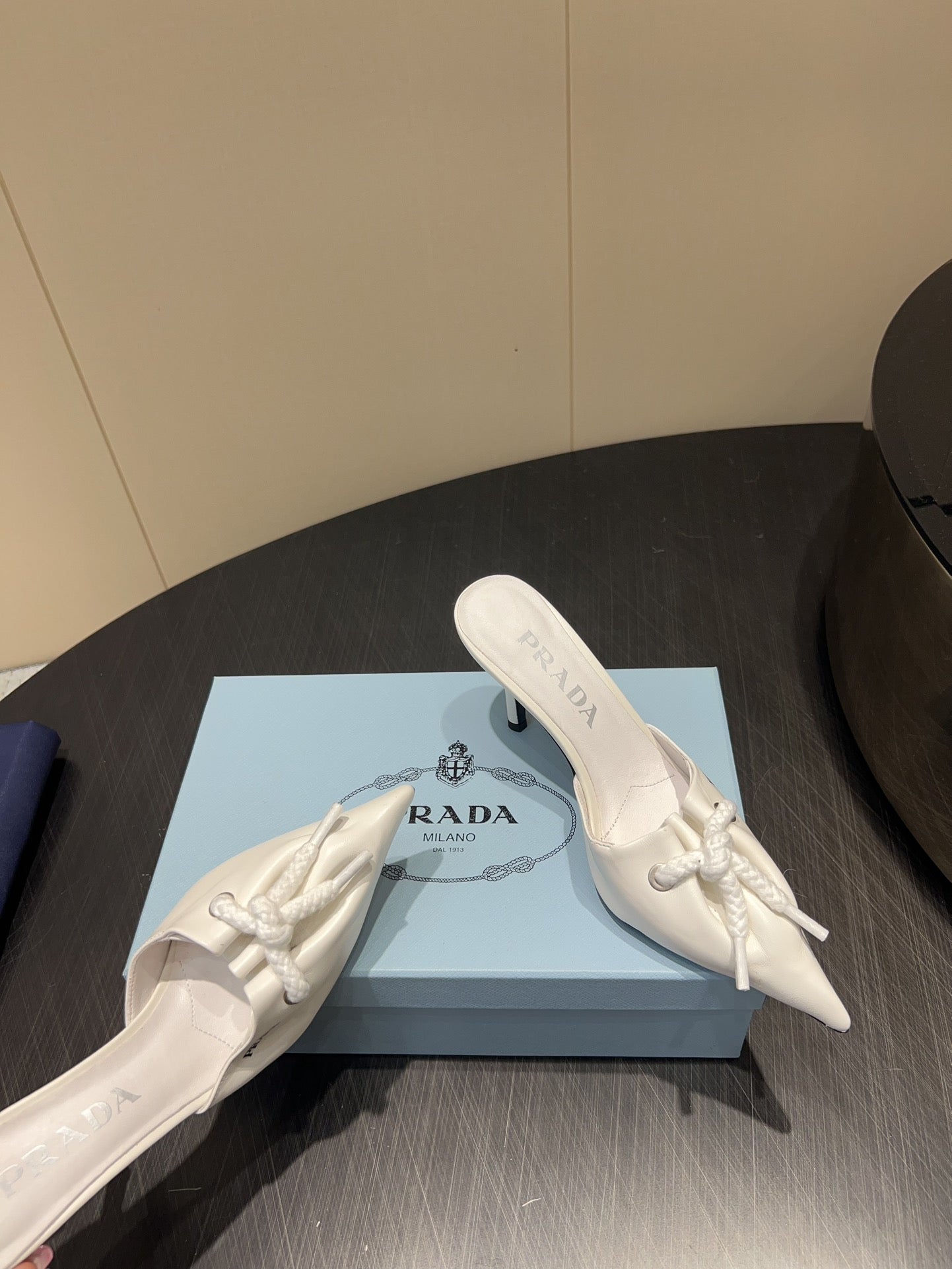 PRADA 25S BRAIDED DETAIL MULES 85MM IN WHITE CALFSKIN