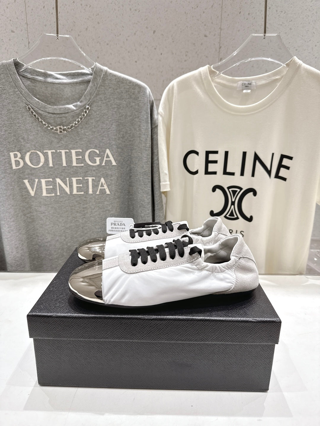 PRADA 25S COLLAPSE RE NYLON AND SUEDE SNEAKERS IN WHITE WITH METAL TOECAP