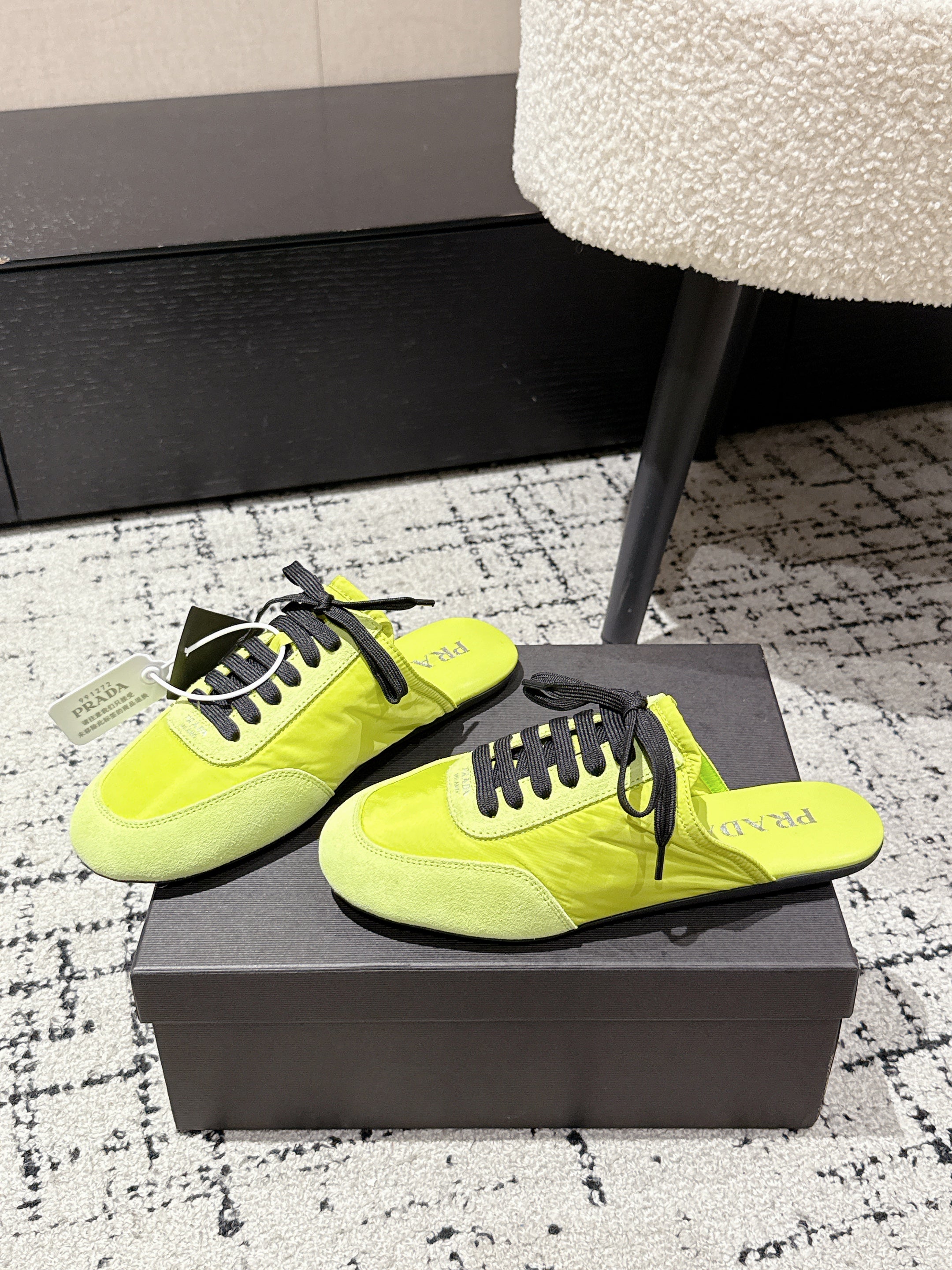 PRADA 25S DEXUN MULE IN LIME GREEN SUEDE LEATHER