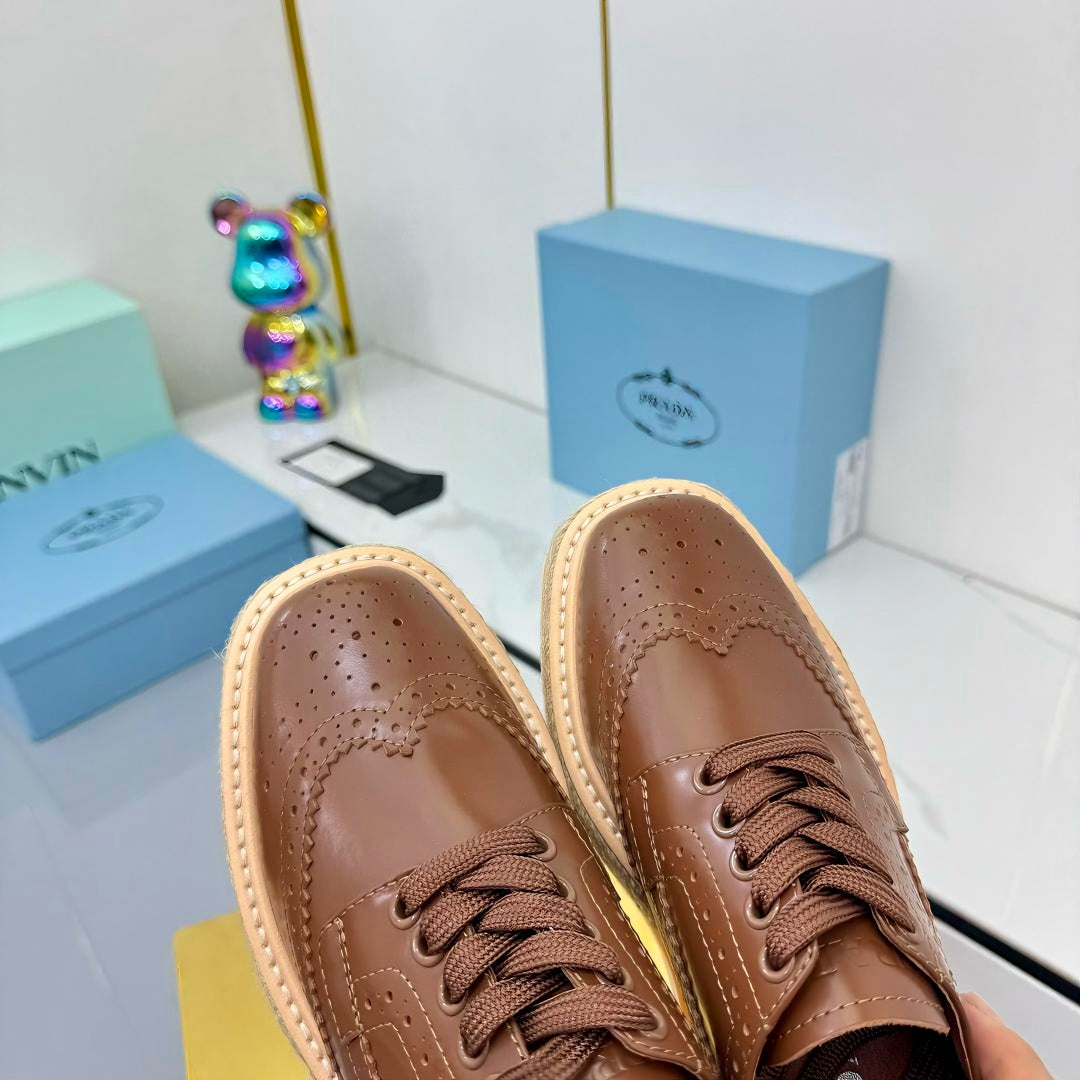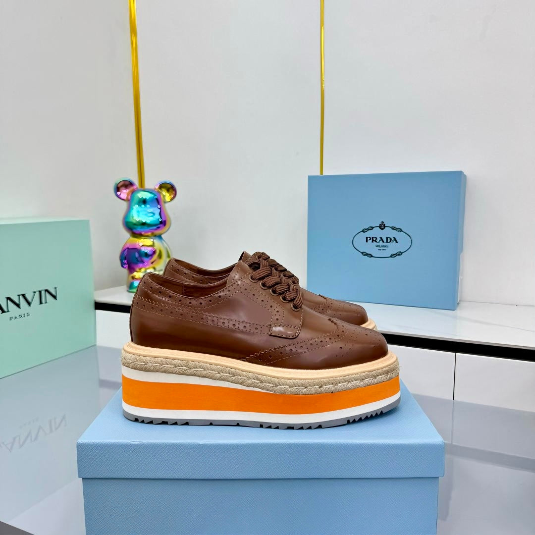 PRADA 25S FLAT WEDGE SHOES 60MM IN DARK BROWN CALFSKIN