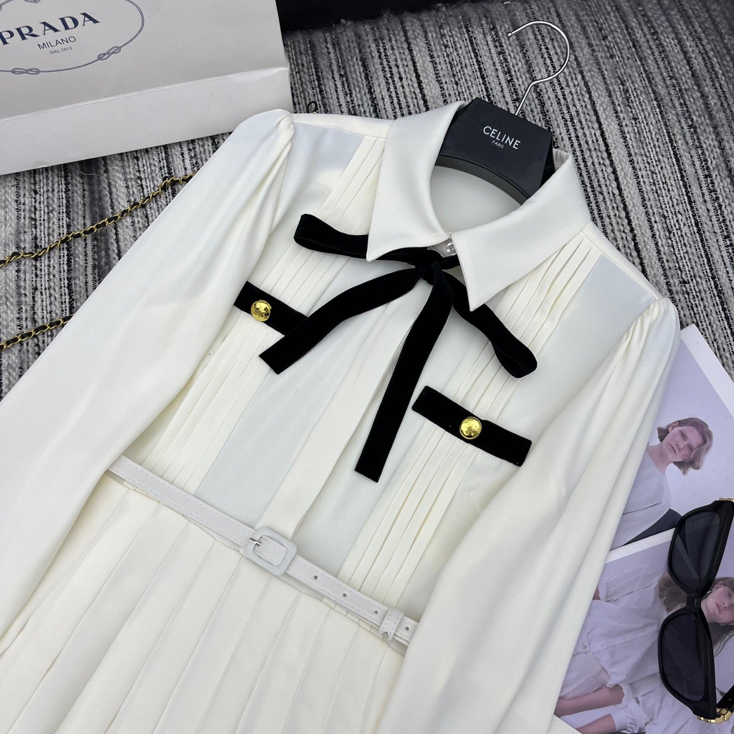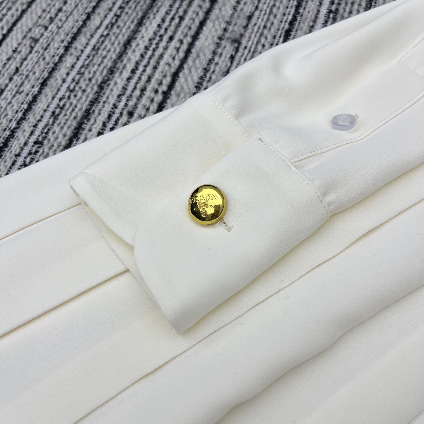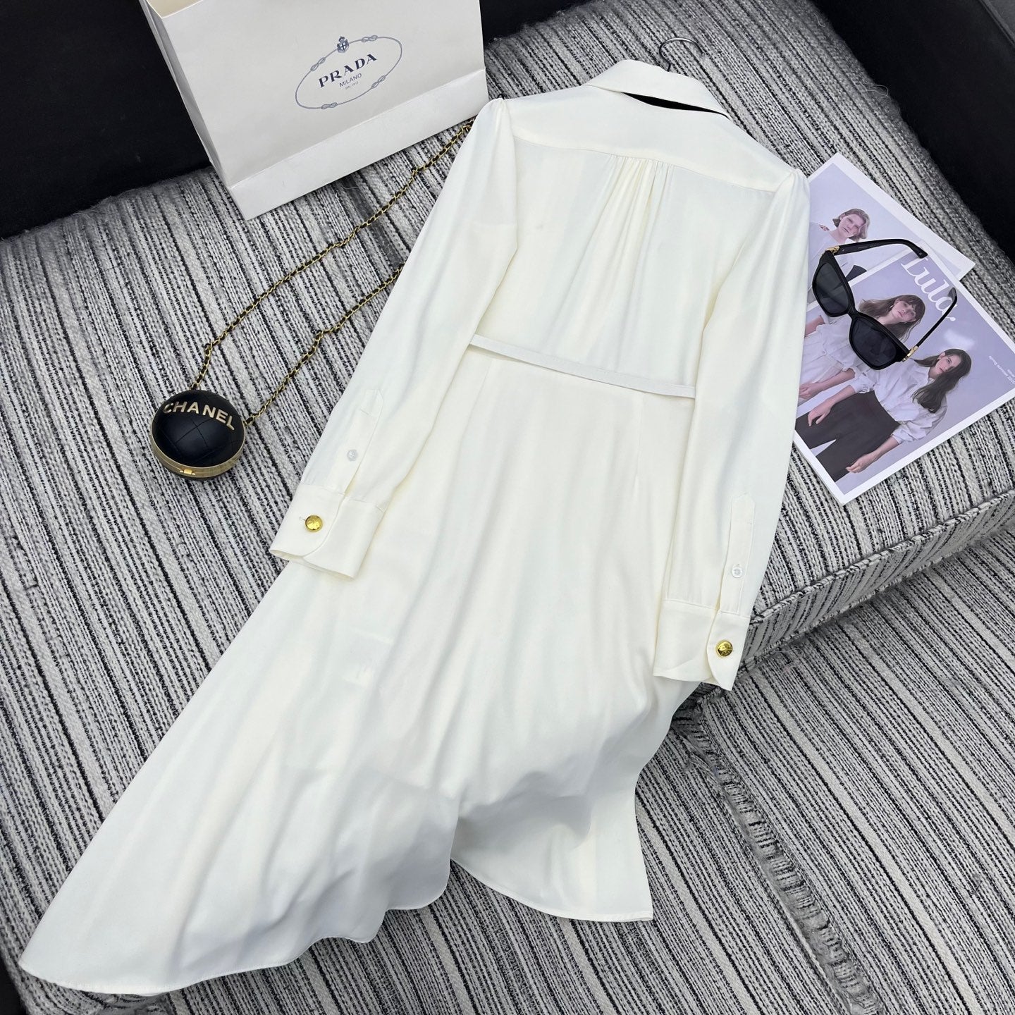 PRADA 25S LONG-SLEEVE COLLARED PLEATED DRESS 360