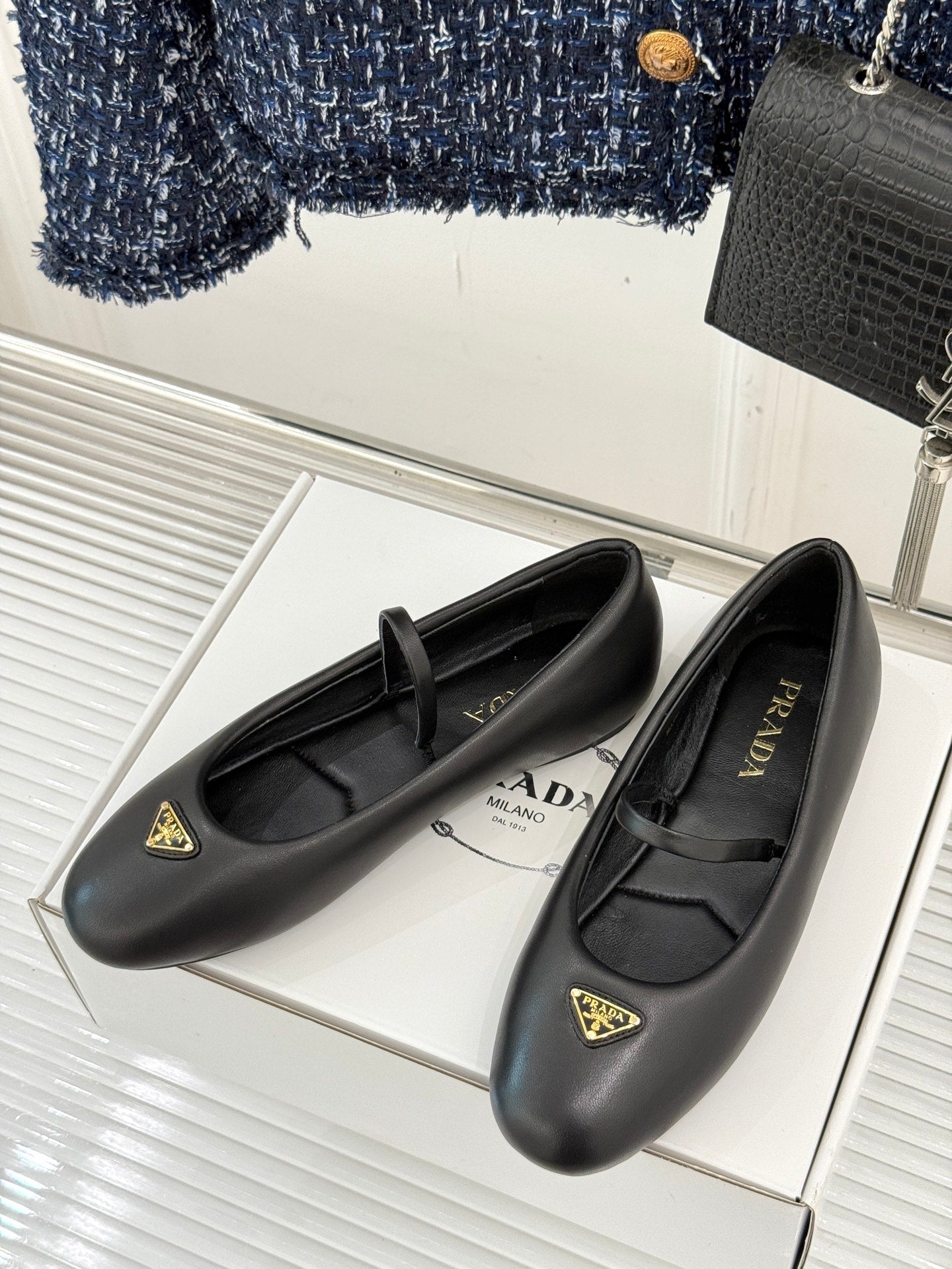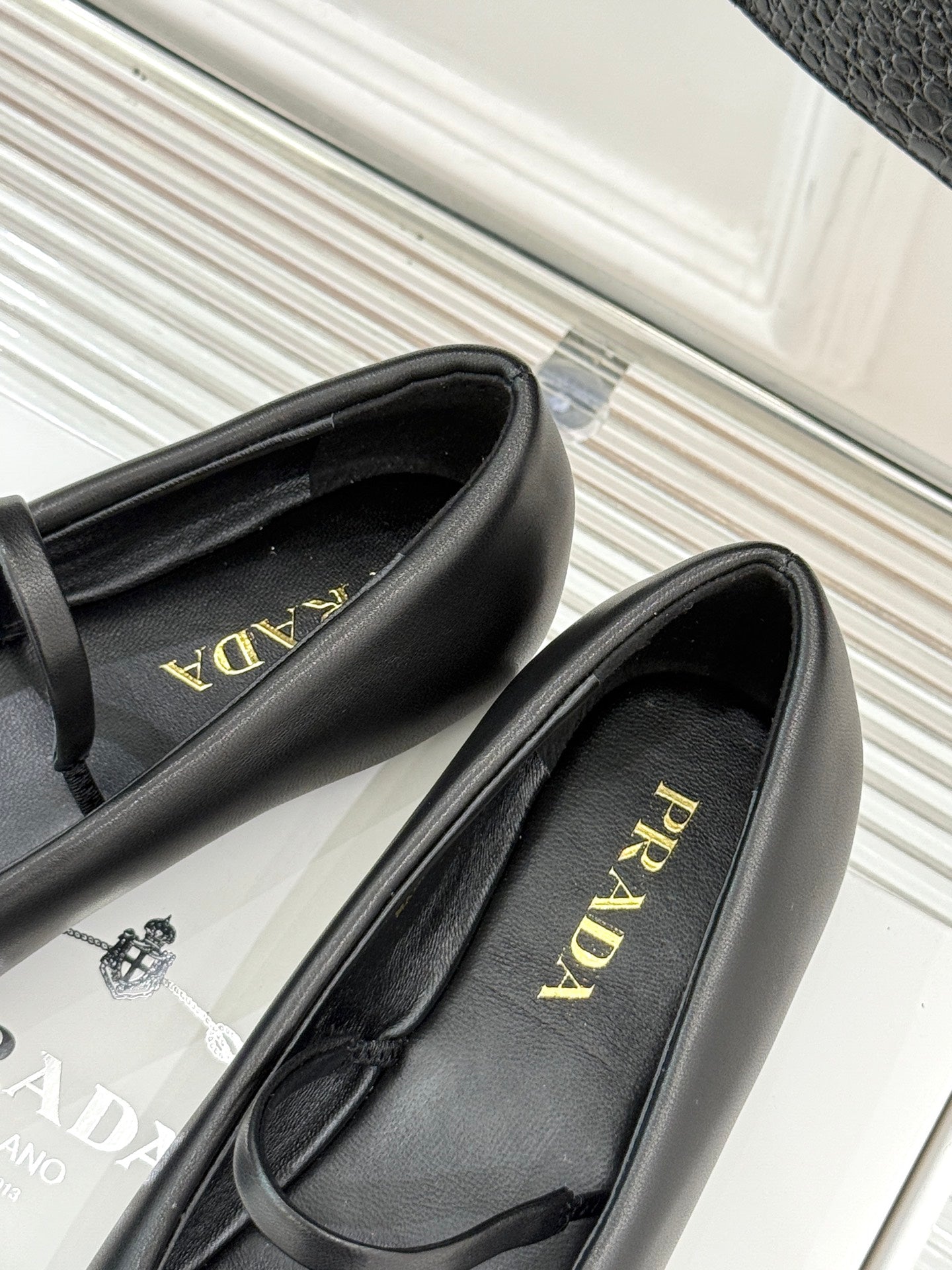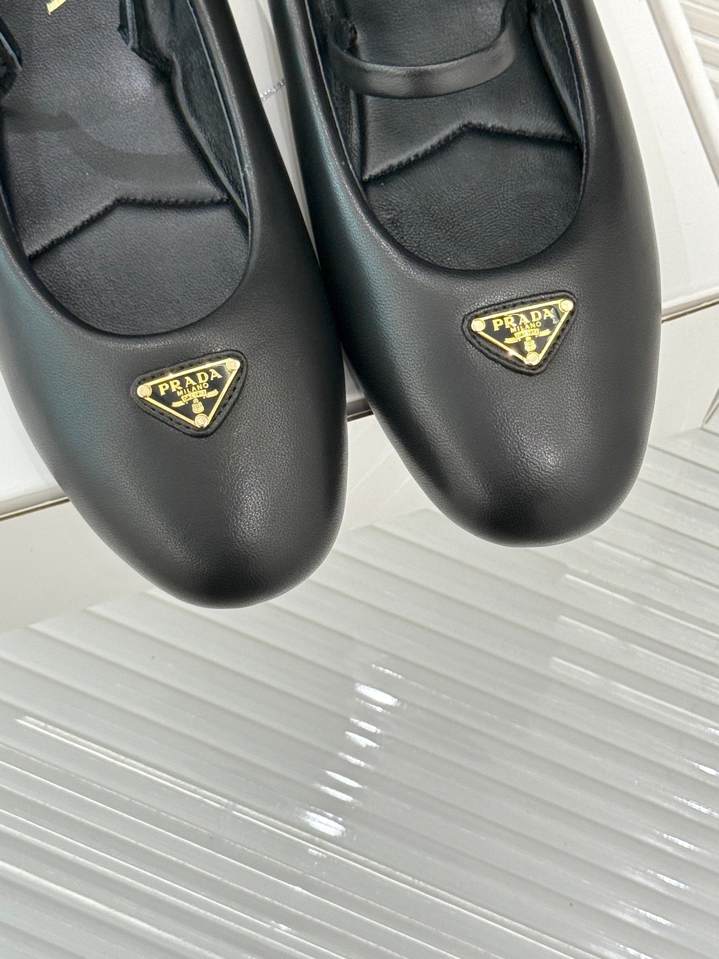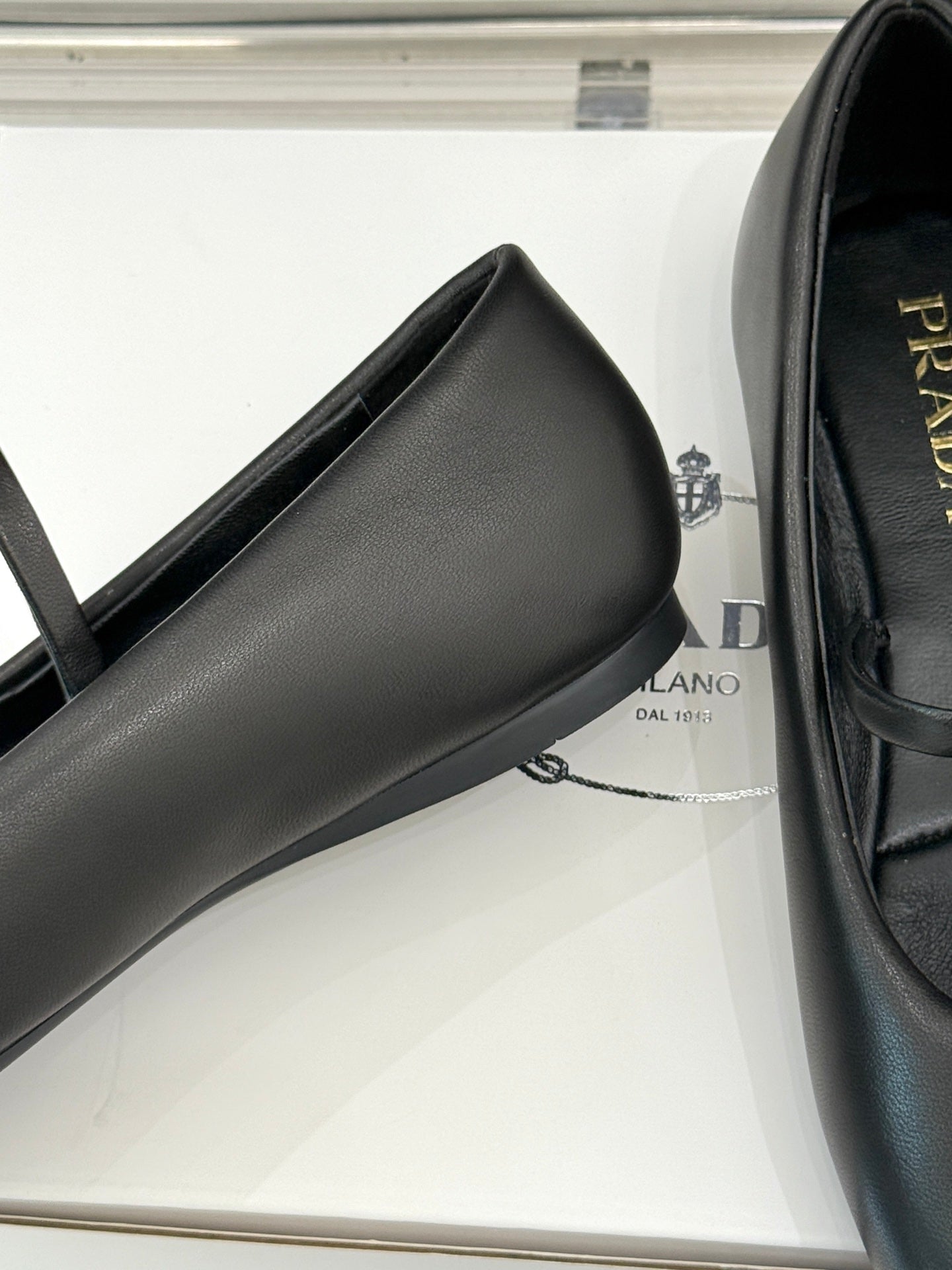 PRADA 25S SOFT PADDED BALLERINAS IN BLACK NAPPA LEATHER