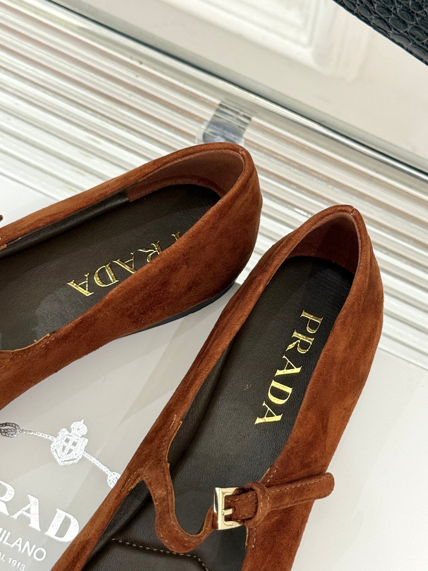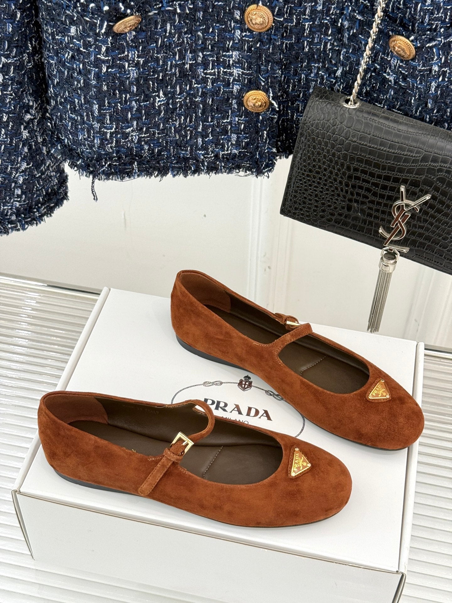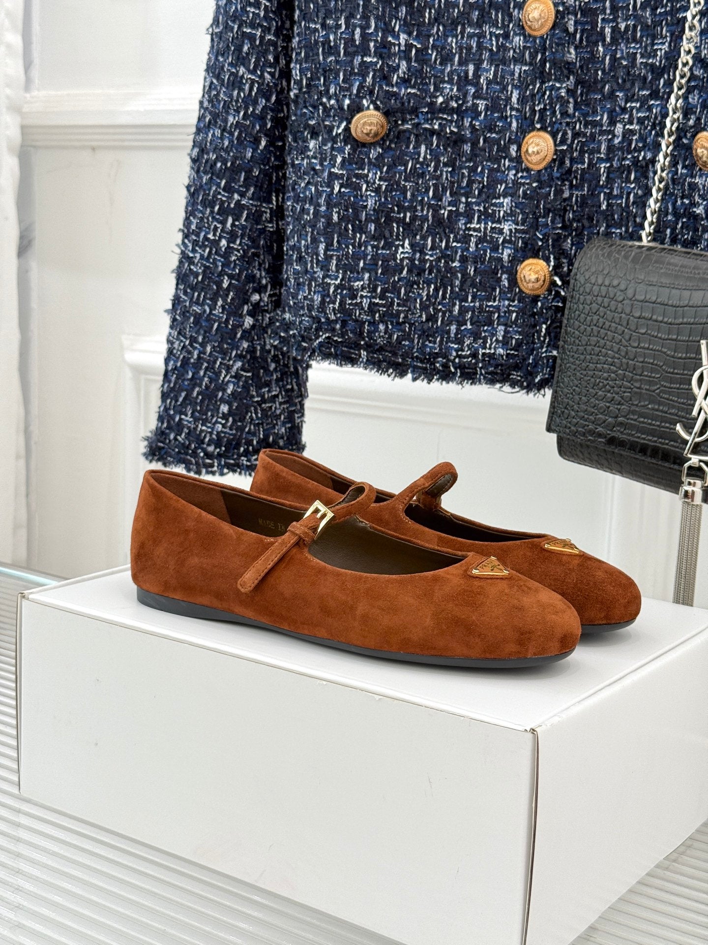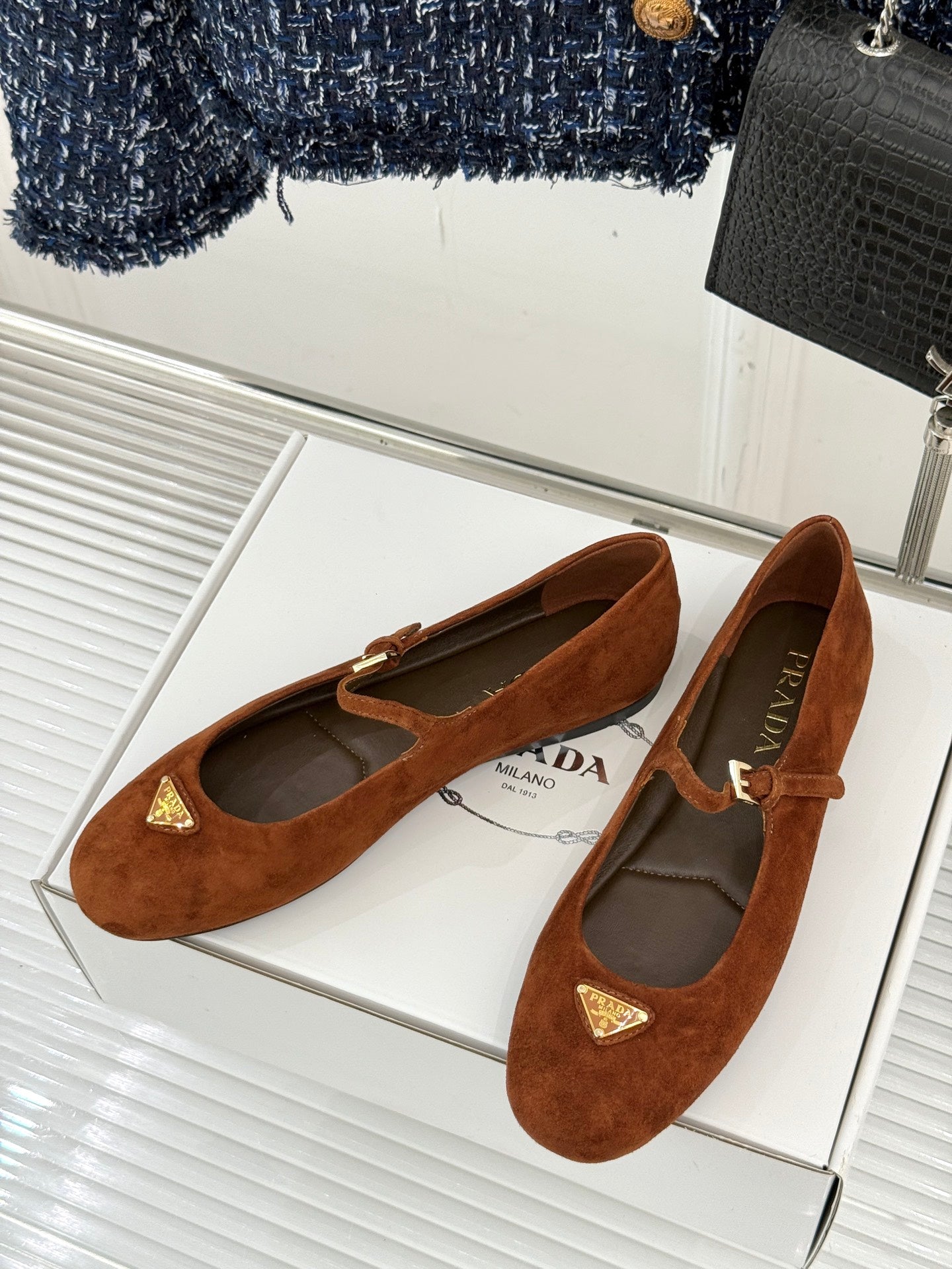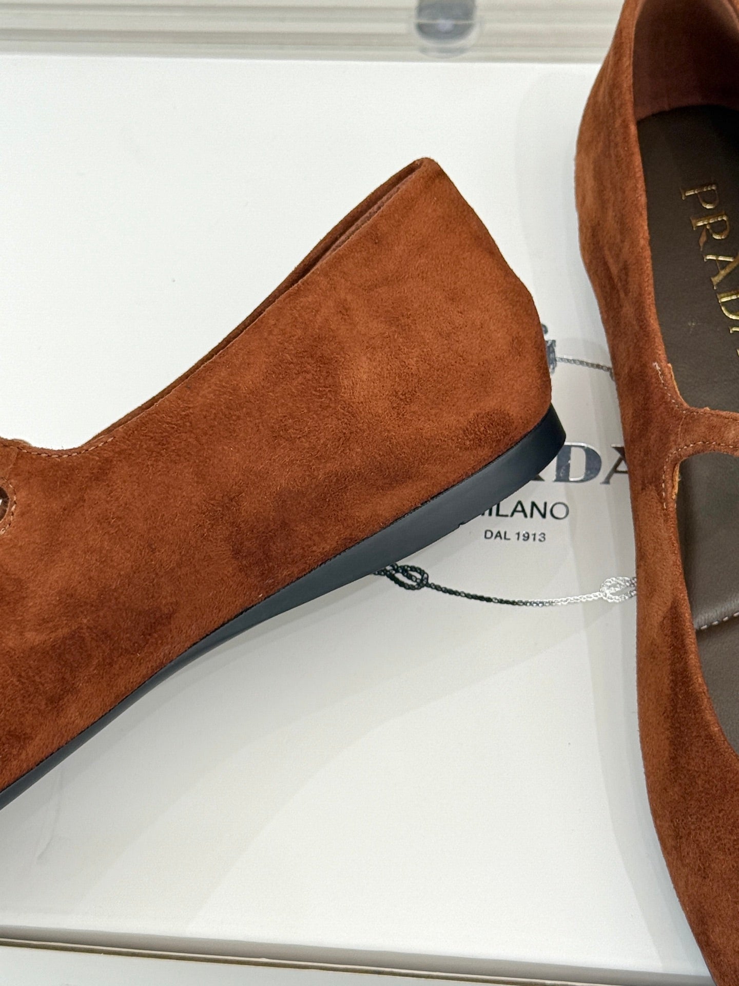 PRADA 25S SOFT PADDED BALLERINAS IN BURNT ORANGE SUEDE