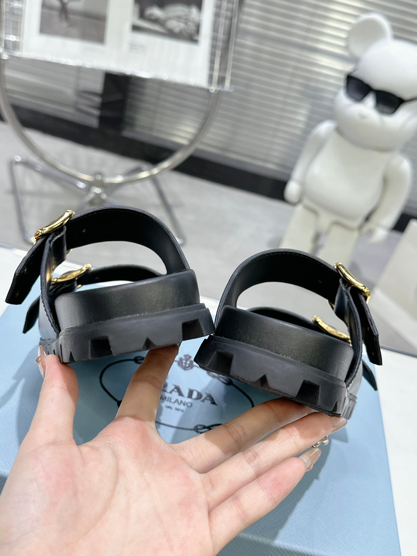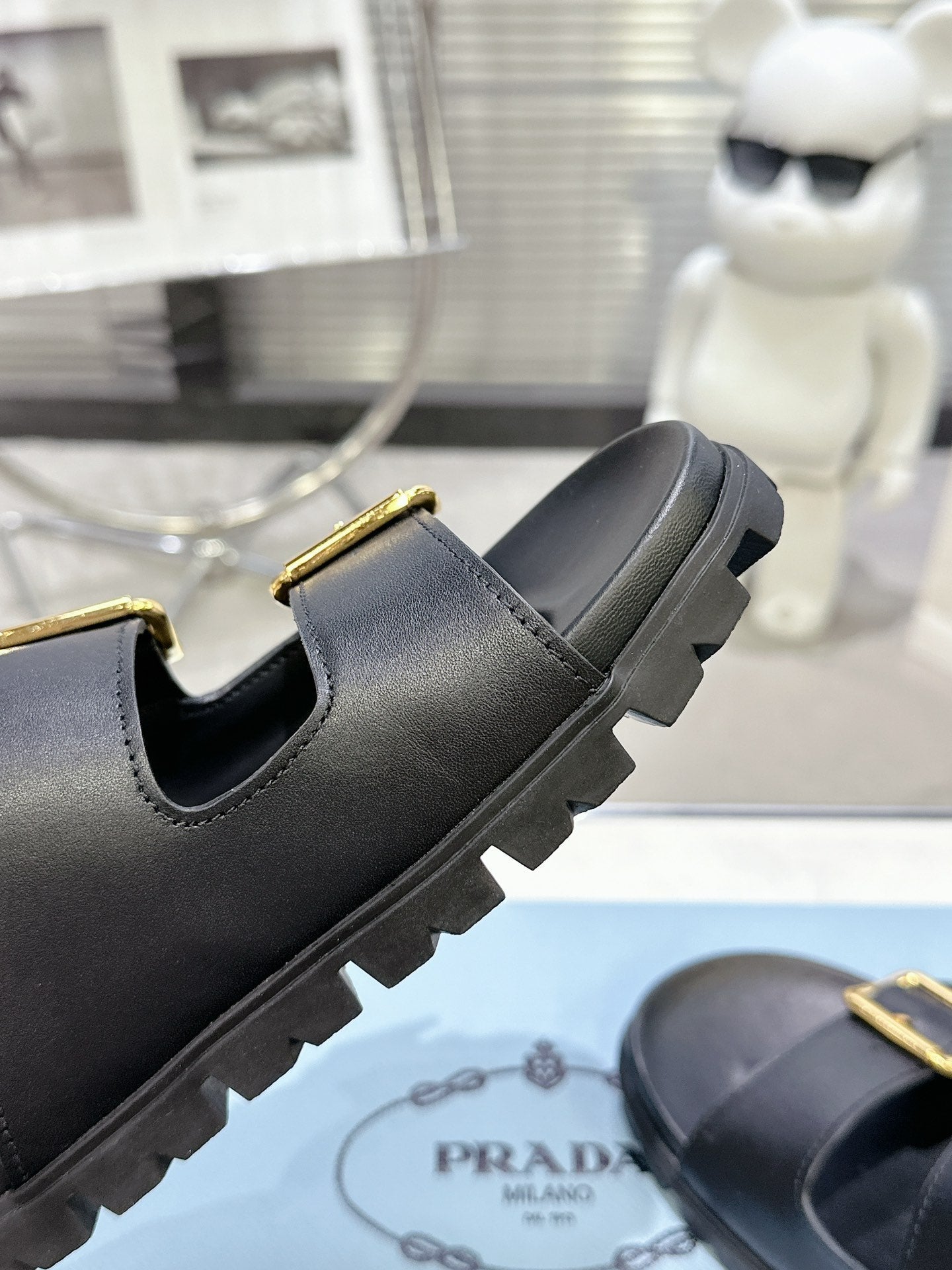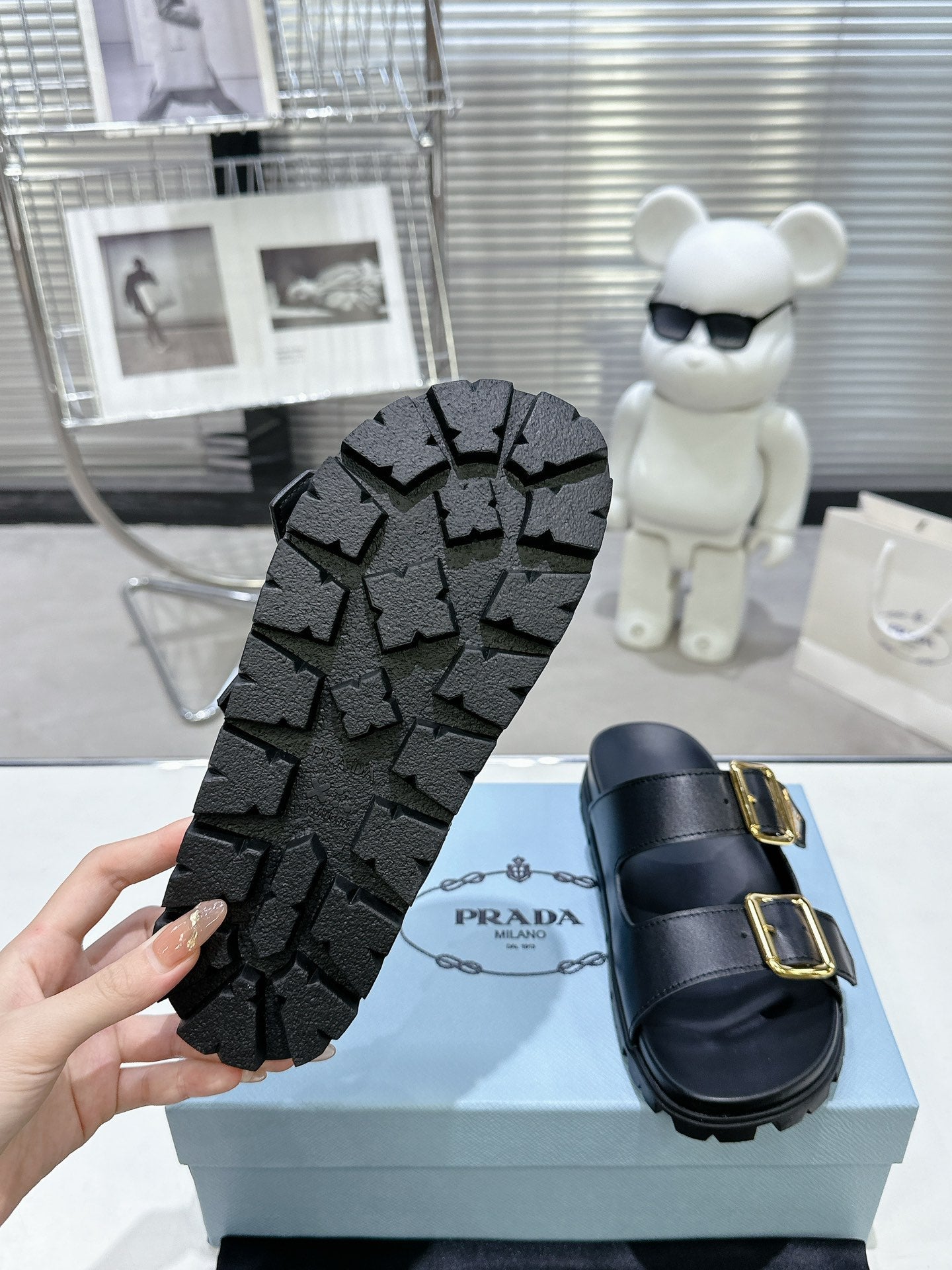 PRADA 25S STRAP SLIDES 30MM IN BLACK CALFSKIN GOLD HARDWARE