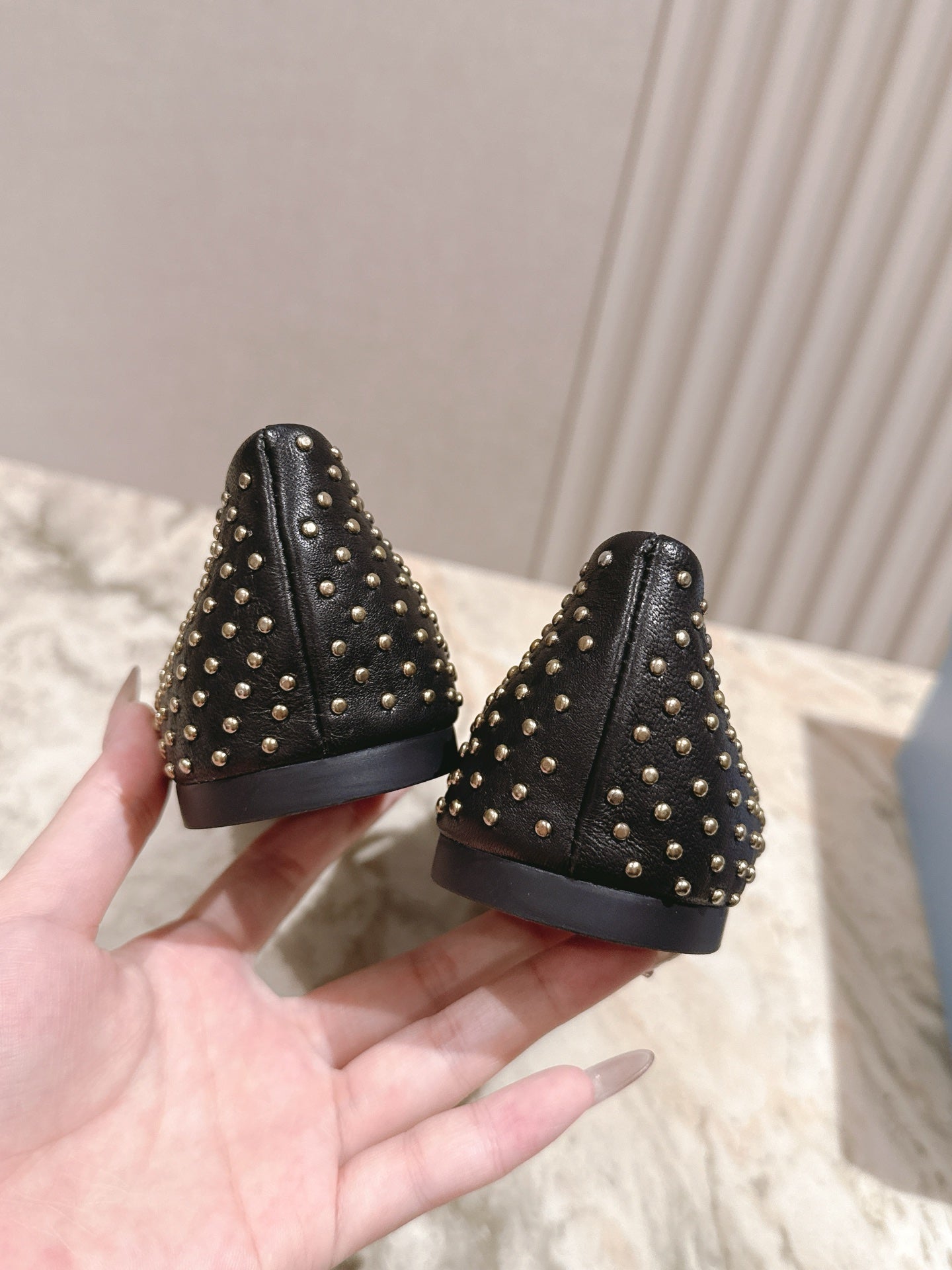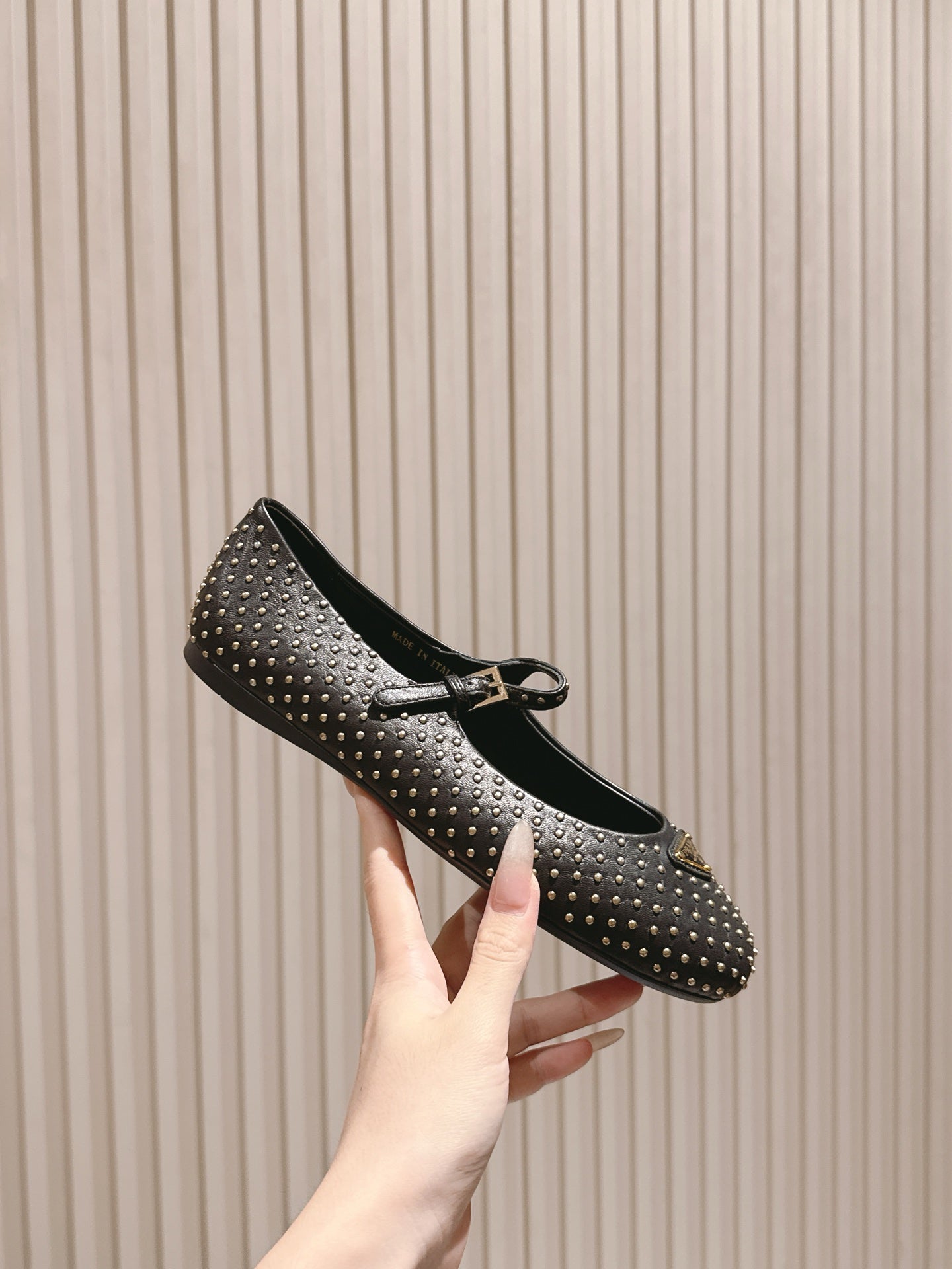 PRADA 25S STUD EMBELLISHED BALLERINA IN BLACK CALFSKIN