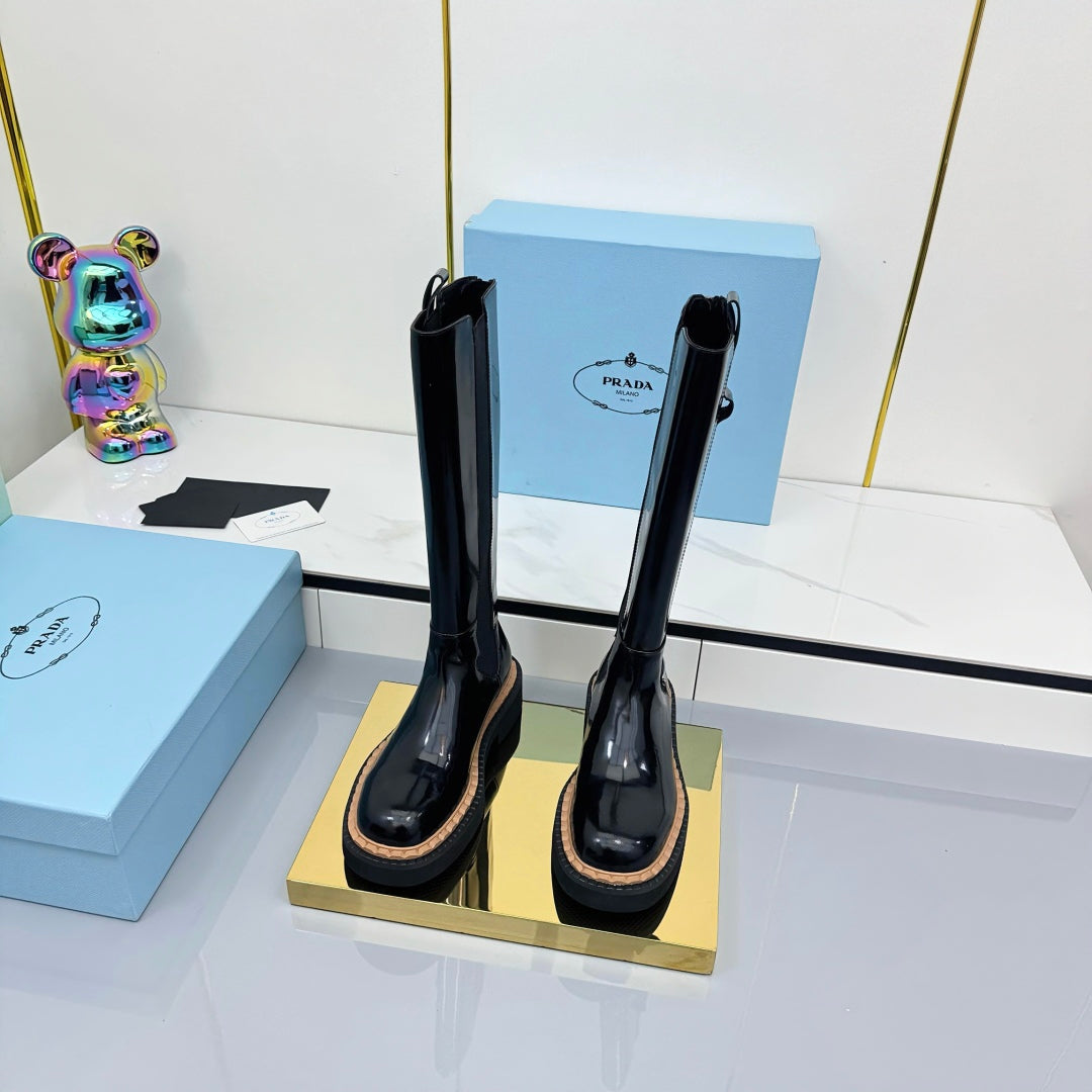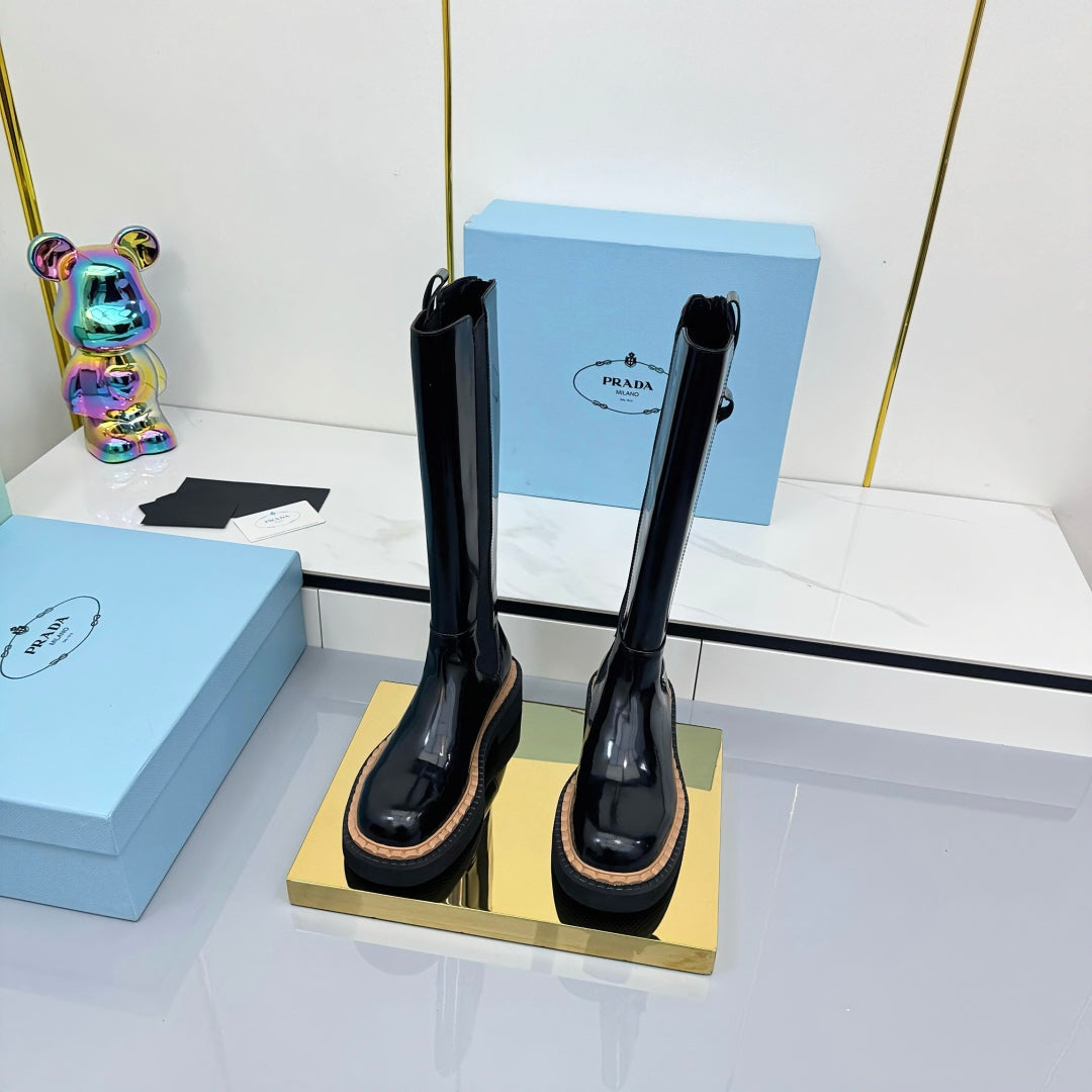 PRADA 25S TALL CHELSEA BOOTS 50MM IN BLACK GLOSSY CALFSKIN
