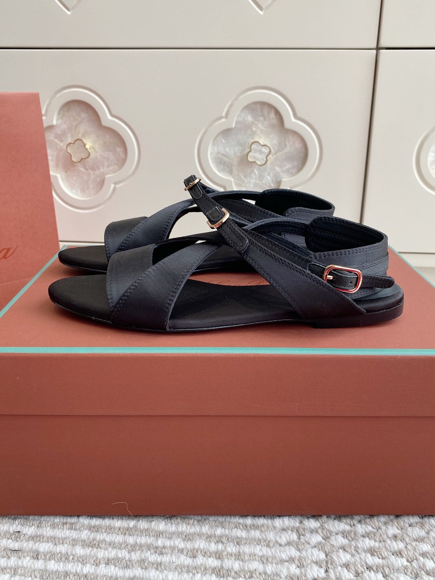 SANDALS IN BLACK SATIN